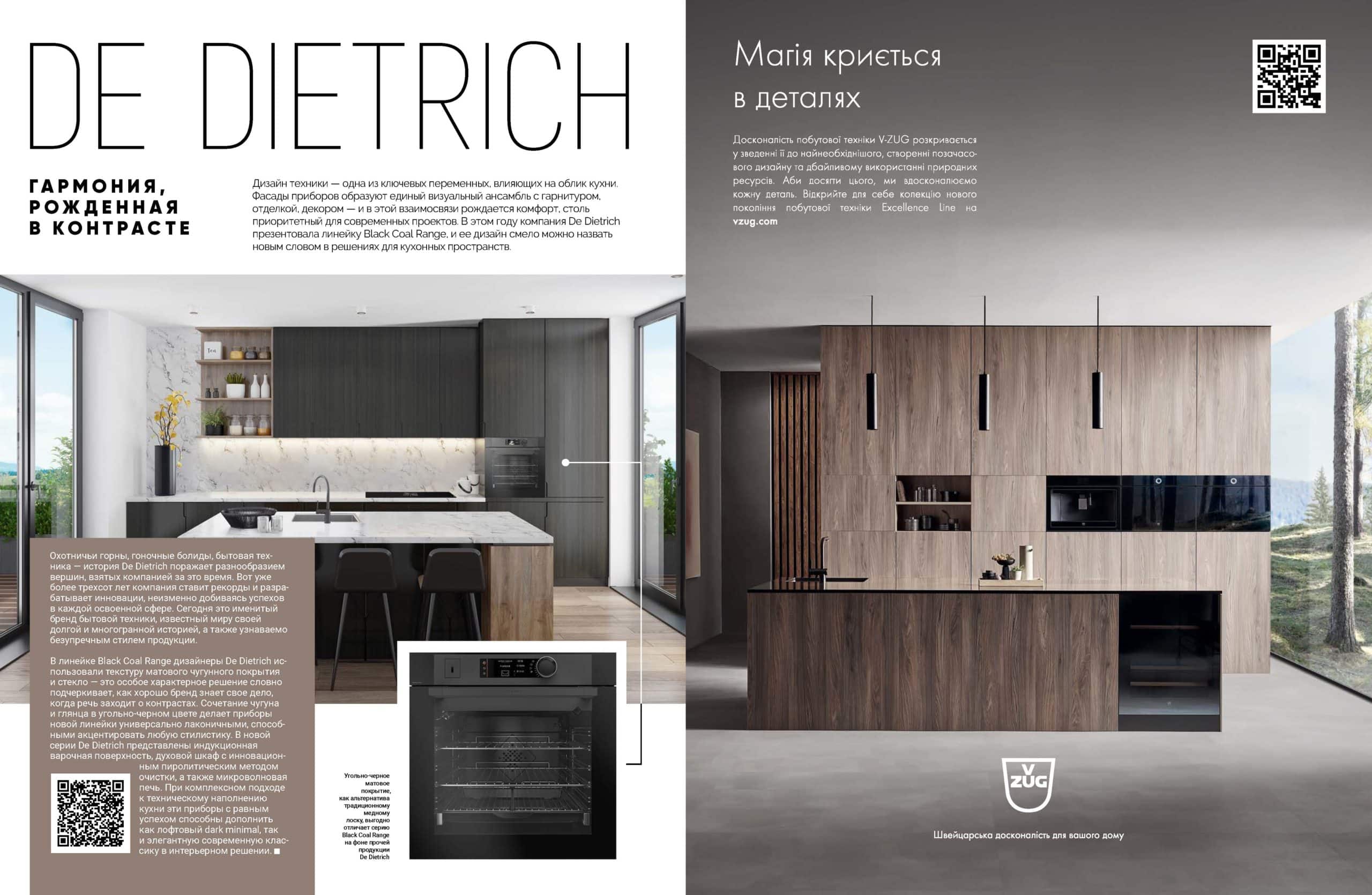 В линейке Black Coal Range дизайнеры De Dietrich использовали текстуру матового чугунного покрытия и стекло — это особое характерное решение словно подчеркивает, как хорошо бренд знает свое дело, когда речь заходит о контрастах. Сочетание чугуна и глянца в угольно-черном цвете делает приборы новой линейки универсально лаконичными, способными акцентировать любую стилистику. В новой серии De Dietrich представлены индукционная варочная поверхность, духовой шкаф с инновационным пиролитическим методом очистки, а также микроволновая печь. При комплексном подходе к техническому наполнению кухни эти приборы с равным успехом способны дополнить как лофтовый dark minimal, так и элегантную современную классику в интерьерном решении.