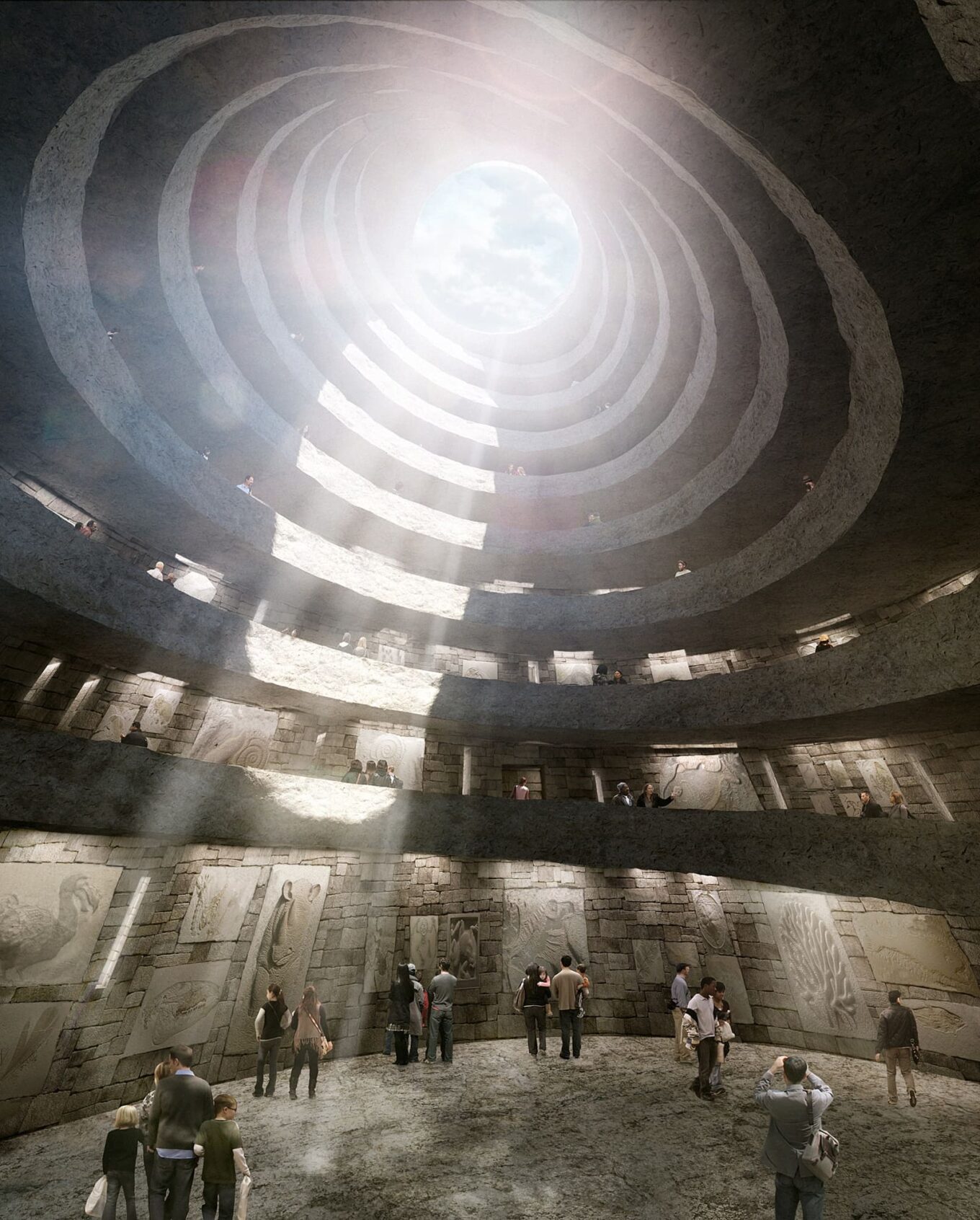 Проходи між ними символізують 22 країни, де євреї знищувалися під час Голокосту. Щоб потрапити всередину, відвідувачеві доведеться пройти через один із цих отворів, кожен із яких приведе до великої зали, яка служить місцем роздумів, а також переходом до підземного освітнього центру.