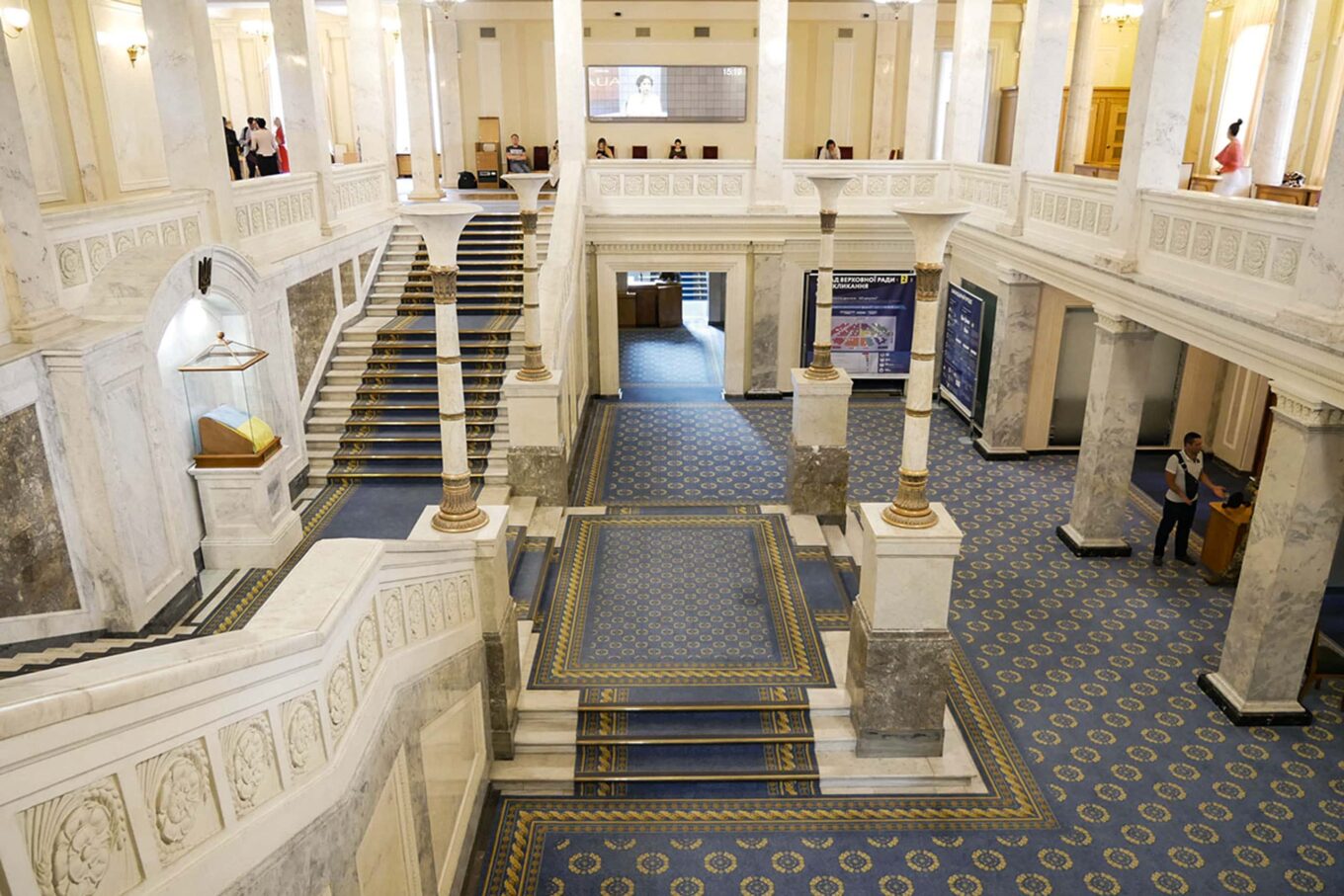 Парадний вхід до будівлі Верховної Ради України з боку Маріїнського парку. Джерело зображення: wikipedia.org
