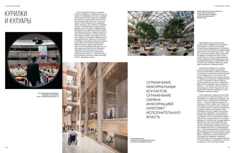 Якщо на сесіях депутати засідають у своїх комфортних інформаційних бульбашках, то в перервах вони можуть вільно контактувати один з одним у кулуарах. Незважаючи на політичні розбіжності, всі парламентарії зобов’язані й мають повну можливість захищати права людини. Для такої співпраці та колаборацій у парламентських будинках багато спільних неформальних просторів.