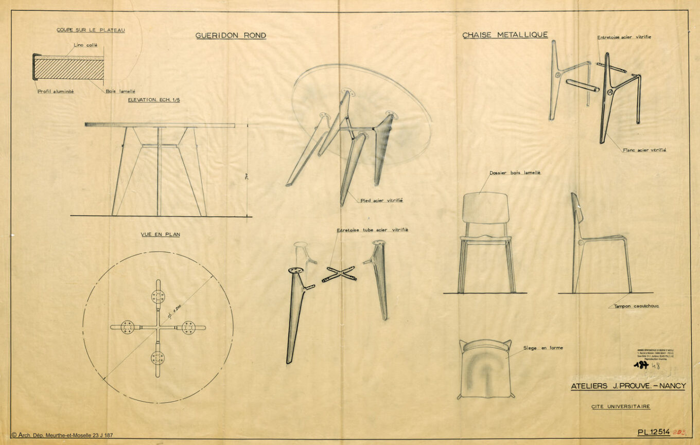 У 1930-х–1950-х роках Жан Пруве працював над збірними конструкціями. Під час Другої світової війни він розробив для французької армії військовий барак, який збирався з кухонних плит і велосипедних рам. До речі, Пруве був активістом французького Опору у роки німецької окупації, а після звільнення Нансі був обраний мером міста.