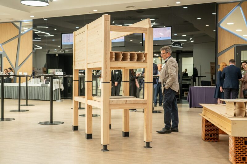 Третій блок тем стосувався перспектив застосування деревини в будівельній галузі, а саме: потенціалу цього матеріалу в архітектурі міст та особливостей реалізації дерев’яних конструкцій із позиції забудовників і будівельників. Представники компаній розповіли про досвід поєднання технологій епохи ШІ та деревини — матеріалу, який не так давно вважався придатним лише для форм на зразок малих садових конструкцій. Дерев’яна багатоповерхівка — чи могли ми уявити щось подібне ще 20 років тому? Нині ж, зазначили експерти конференції, будівництво з використанням матеріалів на базі деревини стало настільки звичним, що вже сприймається як вибір наступного покоління, який назавжди лишить бетонні хмарочоси в неекологічному минулому.