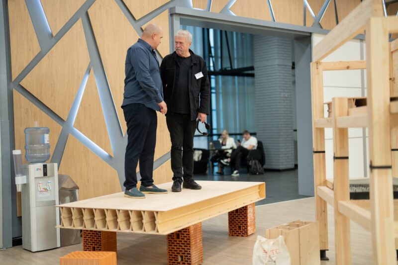 Це означає, продовжив експерт, що розробляти нові конектори й панелі, тестувати і в цілому зводити більше будівель із деревини стало економічно вигідним. А отже, зараз девелоперам потрібна допомога законодавців: «Тут присутні люди, які впливають на прийняття рішень і процес утілення Eurocode 5 в Україні. Ще одна норма, що потребує змін, — це поверховість. Згідно із законом України максимальна висота будинку з дерева — всього два поверхи. Нам усім потрібно бути до цього долученими».