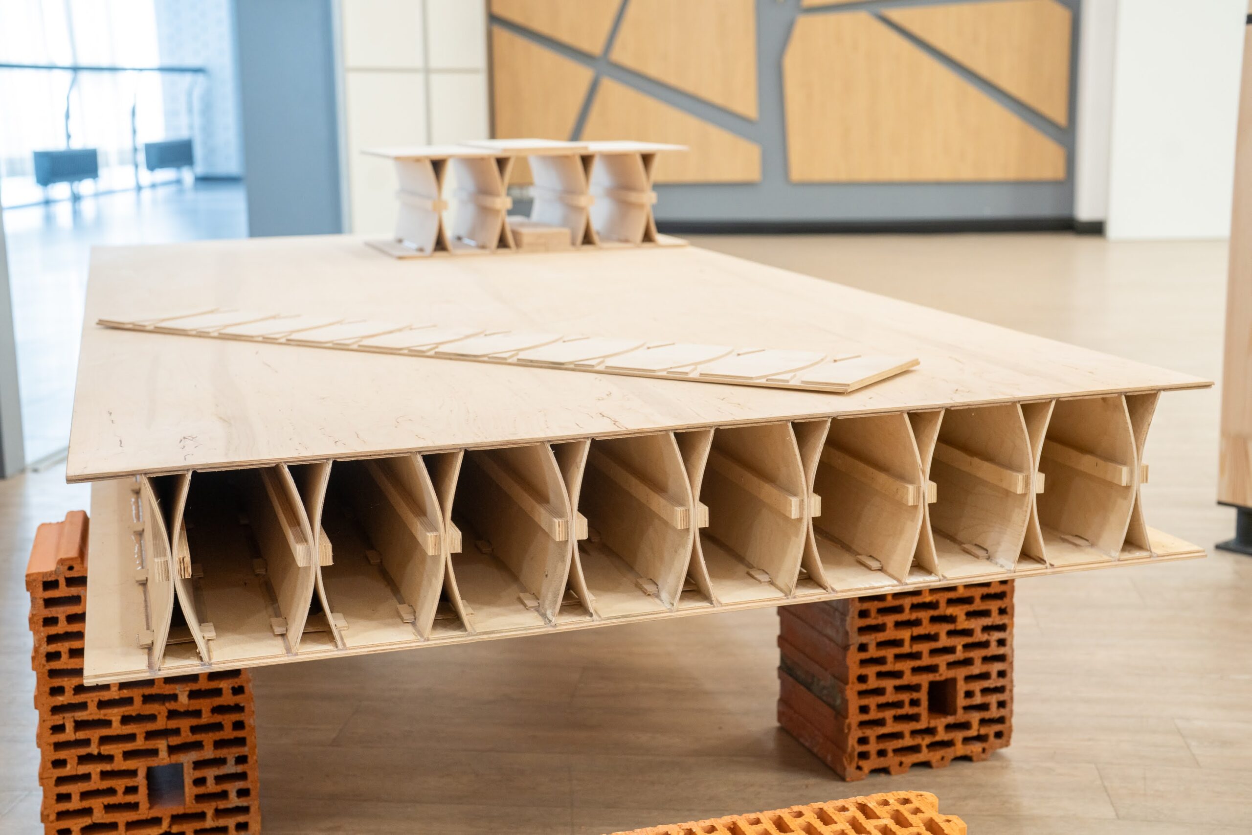 Першу тему розкрив професор Дрезденського університету Роберт Йоквер. Науковець почав свою доповідь із наочних прикладів: «Нині в Гетеборзі, Швеція, будують восьмиповерхову офісну будівлю. Опорна конструкція споруди зроблена з бетону, але решта її елементів — дерев’яні. Важливо зазначити, що за жорсткість таких конструкцій відповідають конектори. До слова, найвища з досі зведених будівель із деревини на сьогодні — 80 метрів, а місце зведення — Норвегія. Вона має сотні різних конекторів. Проєктувальникам було нелегко забезпечити достатню міцність і пластичність, але вони впорались. Тож, як ви розумієте, ситуація така: ми виходимо на новий рівень щодо поверховості, ширини й пролітності, але нам щоразу доводиться працювати над конекторами. І саме це сьогодні — наше головне завдання!».