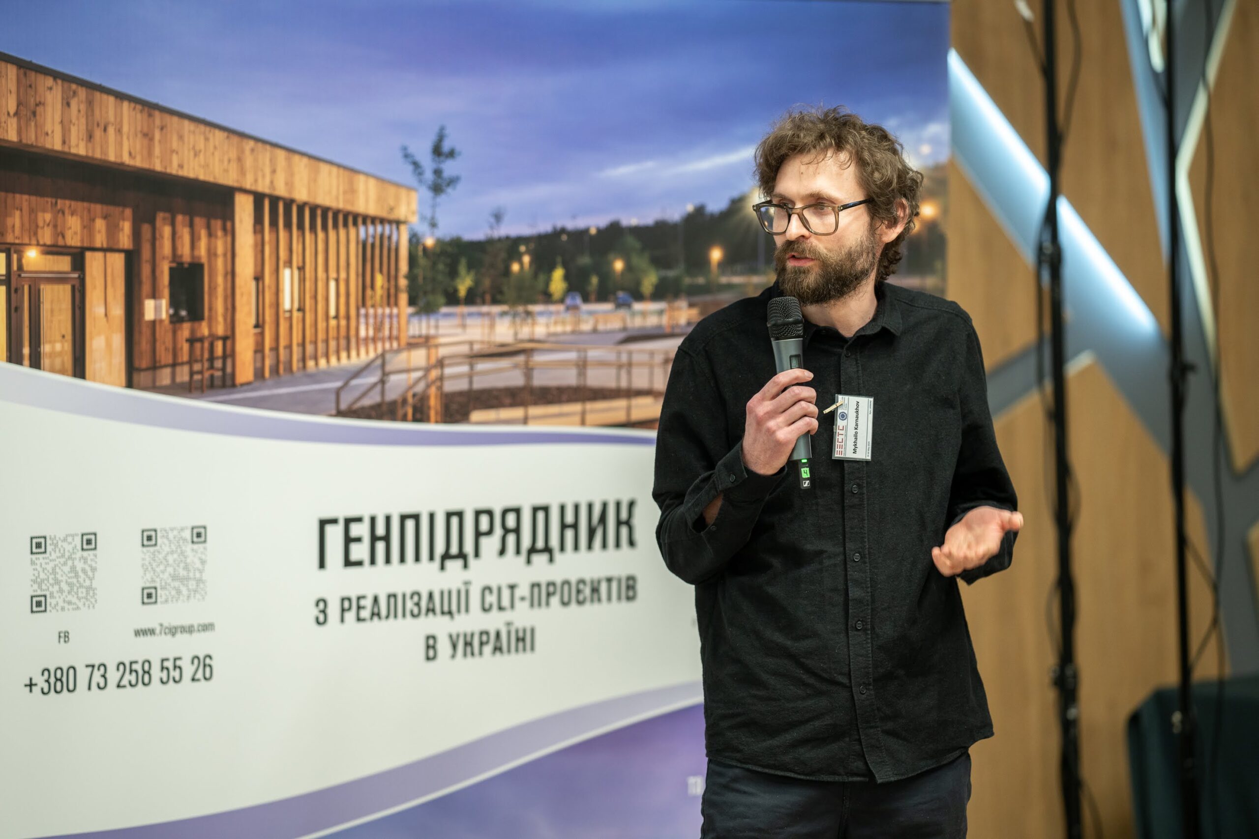 Ключовою точкою цього найменш вузькоспеціального й водночас найбільш дискутивного блоку став виступ СЕО проєкту Vlasne Misto Ярослава Корніяченка на тему «Дерев’яні конструкції — більше, ніж конструкційний матеріал для нових українських міст» та його обговорення з гостями заходу. Ярослав Корніяченко почав розповідь із того, що вказав на проблеми нової галузі.