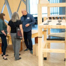 Третій блок тем стосувався перспектив застосування деревини в будівельній галузі, а саме: потенціалу цього матеріалу в архітектурі міст та особливостей реалізації дерев’яних конструкцій із позиції забудовників і будівельників. Представники компаній розповіли про досвід поєднання технологій епохи ШІ та деревини — матеріалу, який не так давно вважався придатним лише для форм на зразок малих садових конструкцій. Дерев’яна багатоповерхівка — чи могли ми уявити щось подібне ще 20 років тому? Нині ж, зазначили експерти конференції, будівництво з використанням матеріалів на базі деревини стало настільки звичним, що вже сприймається як вибір наступного покоління, який назавжди лишить бетонні хмарочоси в неекологічному минулому.