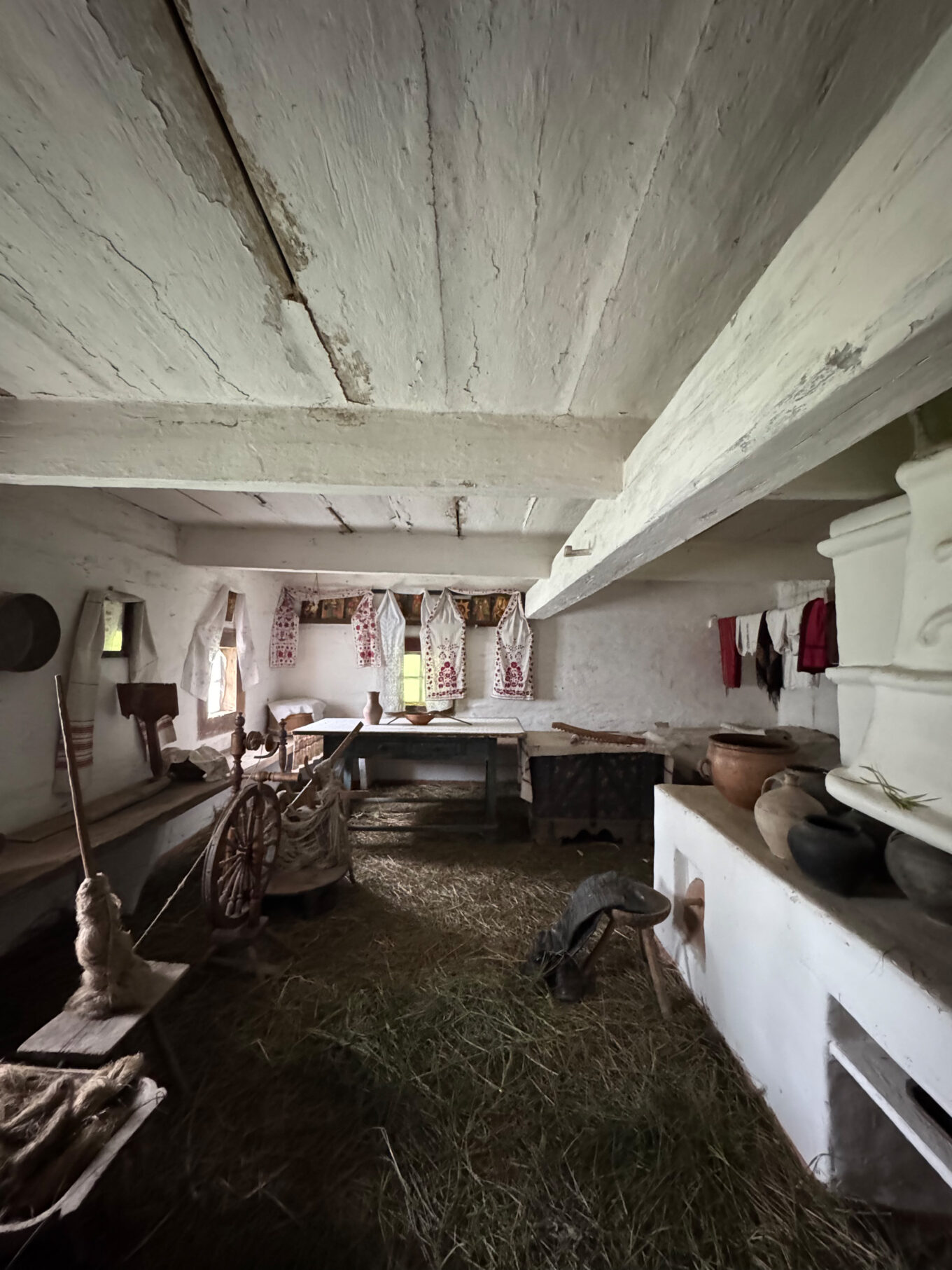 Разом з експертом гості розглянули типове планування хат: при вході в світлицю розташована піч, по діагоналі від неї — святий кут, а по периметру — лави. Говорили й про освітлення в українських хатах: лучини, свічки воскові та лоєві, каганці.