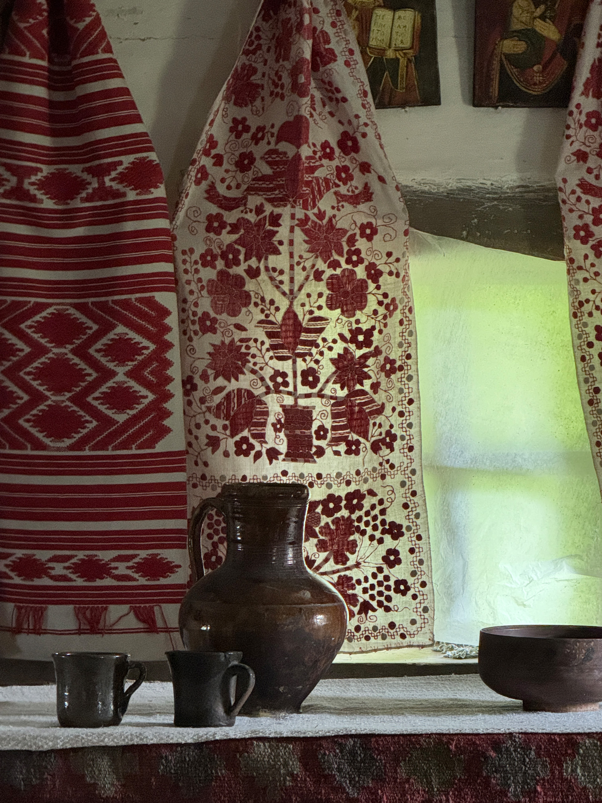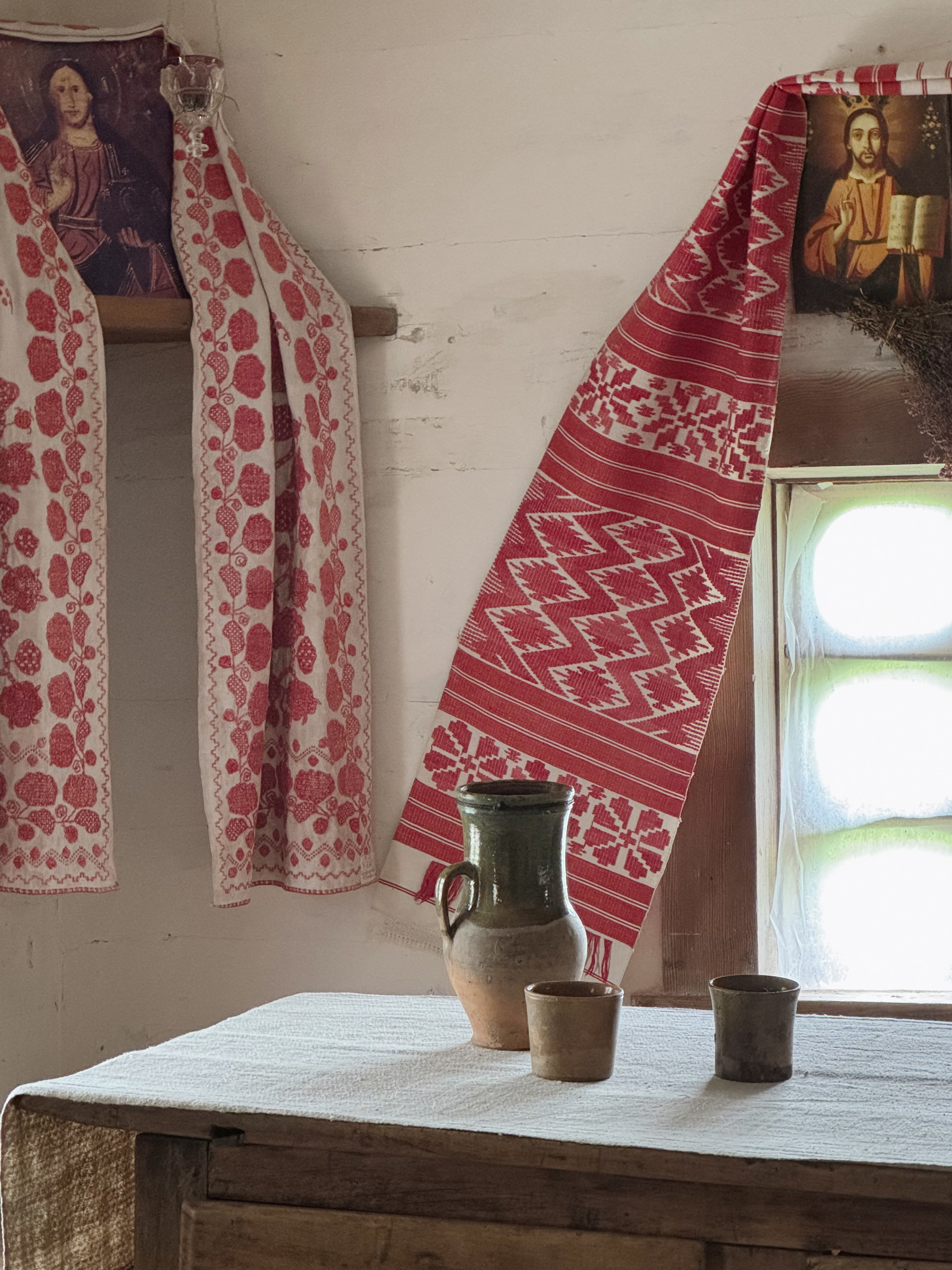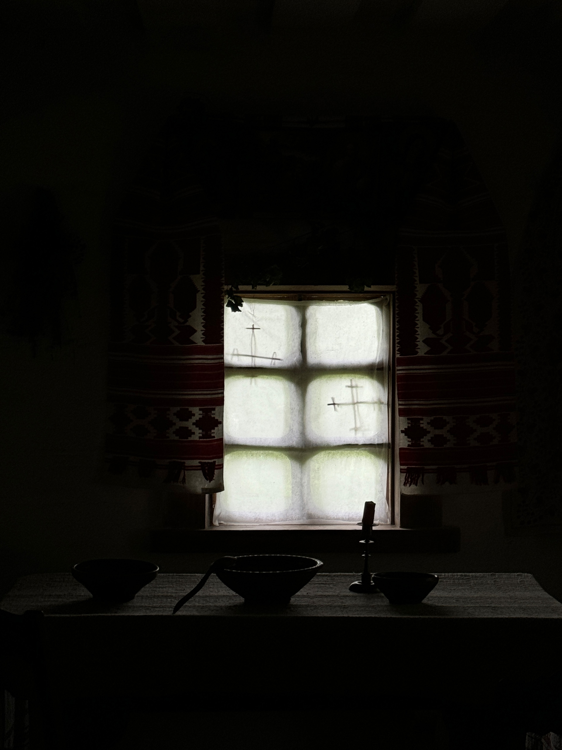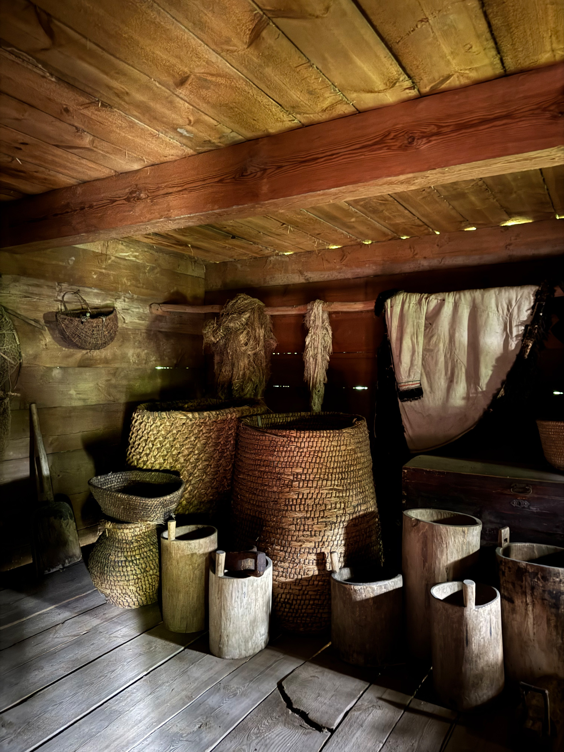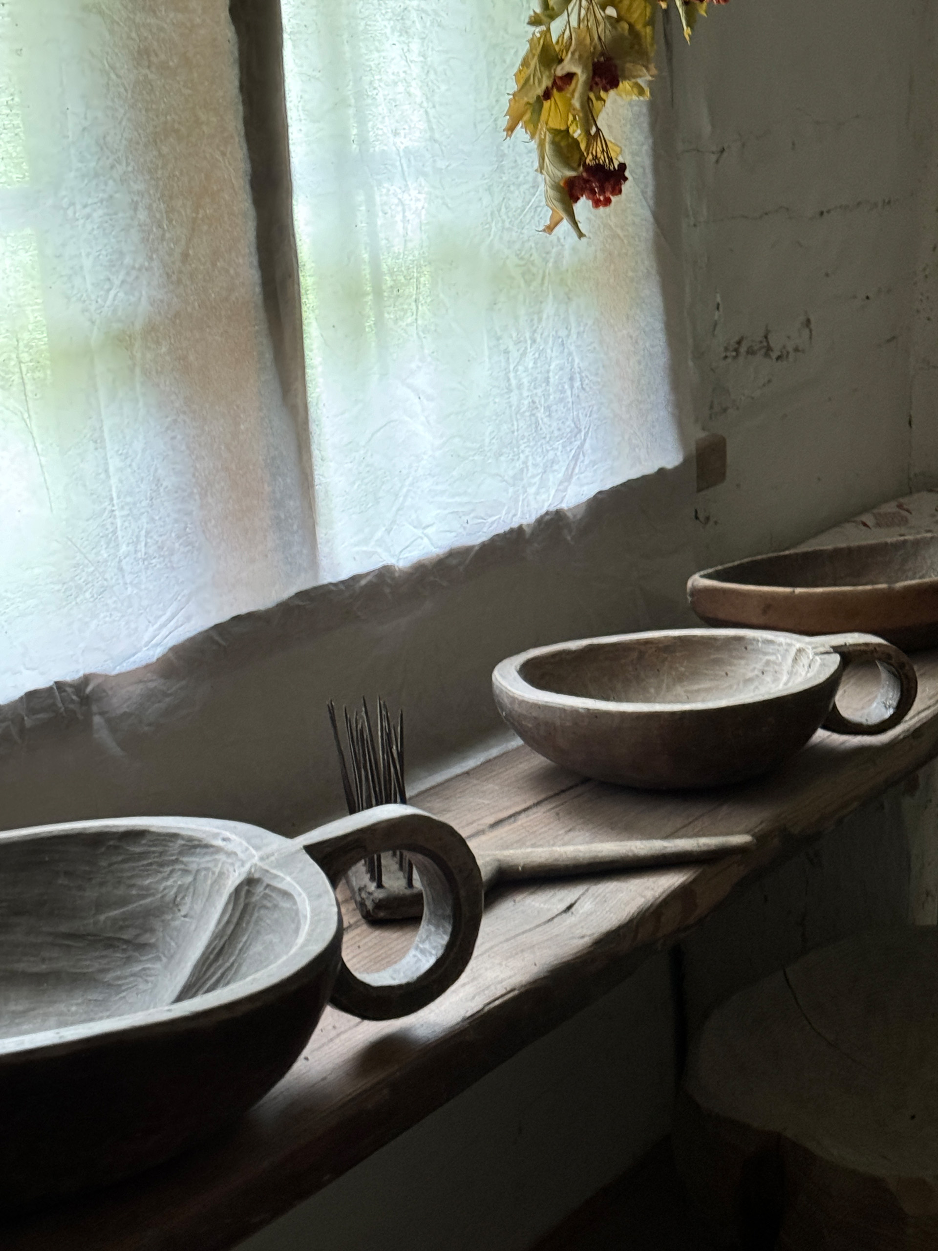 Разом з експертом гості розглянули типове планування хат: при вході в світлицю розташована піч, по діагоналі від неї — святий кут, а по периметру — лави. Говорили й про освітлення в українських хатах: лучини, свічки воскові та лоєві, каганці.