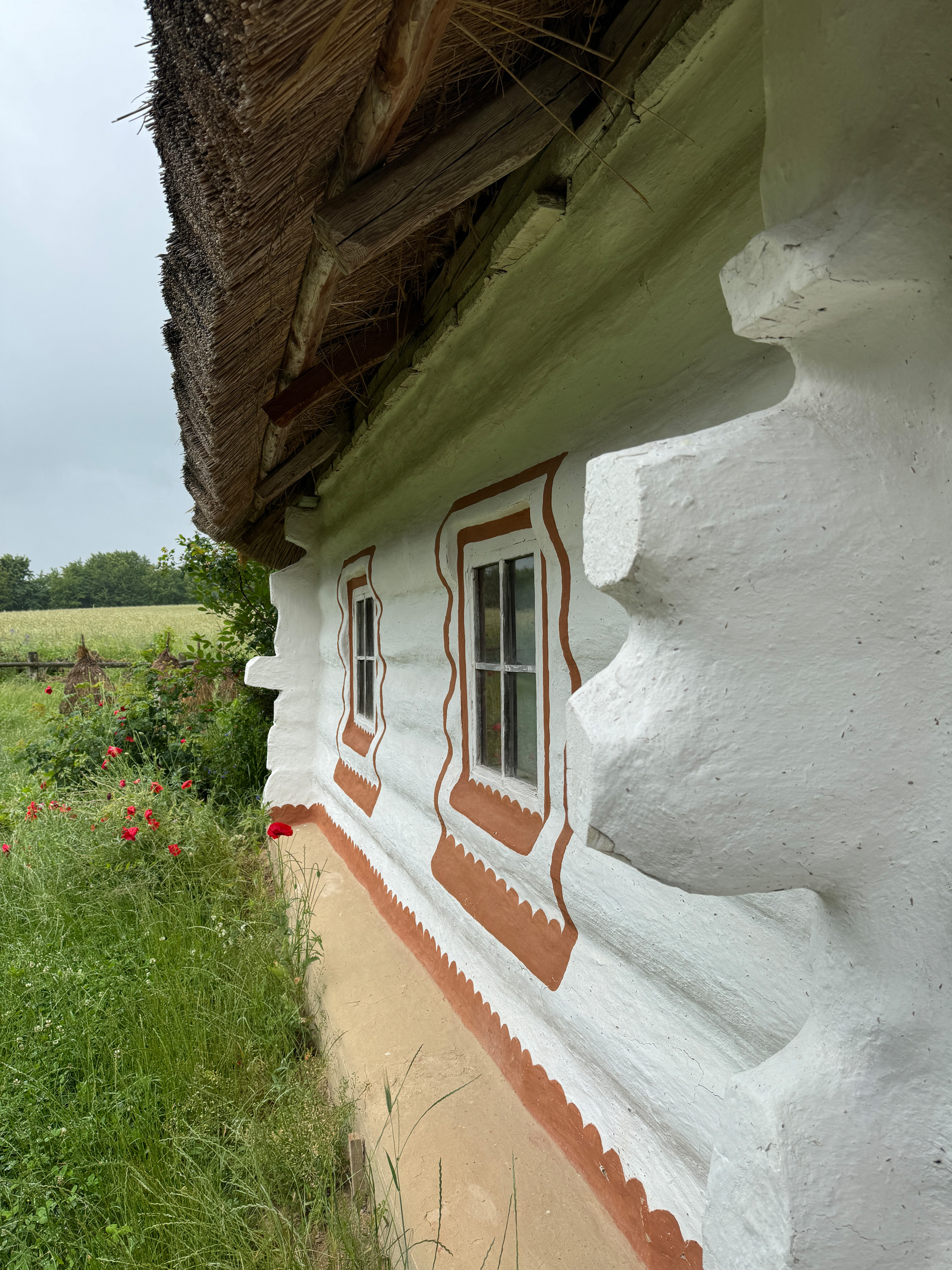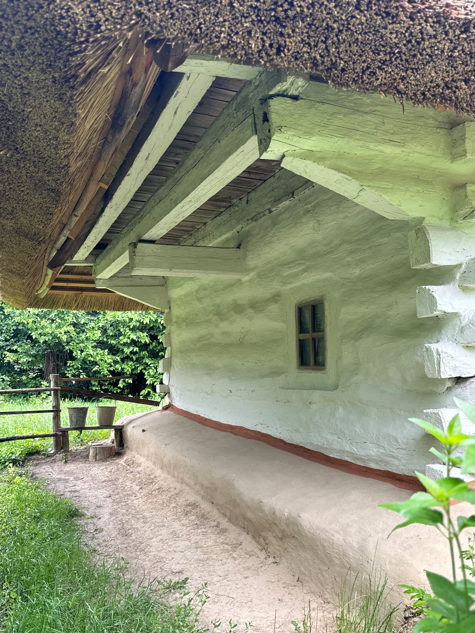 Хати в Україні розрізняють за типом конструкції — зрубні, каркасні та мазані, і всі три типи представлені на території музею. Також тут відображений розвиток типології хат: від однокамерної споруди, появи сіней, добудови холодних комор і до будинків заможних людей із декількома світлицями.