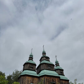 Ще одна споруда громадського центру села — найгарніше, що бачили українці 200–300 років тому протягом життя — церква, найбільша й найвеличніша споруда в селі. Церкви будувалися в селах, де було більше 50 дворів: вважалося, що такий прихід може прогодувати священника. Життя селянина — щоденна праця, а церква — це недільний відпочинок, куди, зокрема, приходили соціалізуватися, послухати проповідь, спів, подивитися на велич і красу.