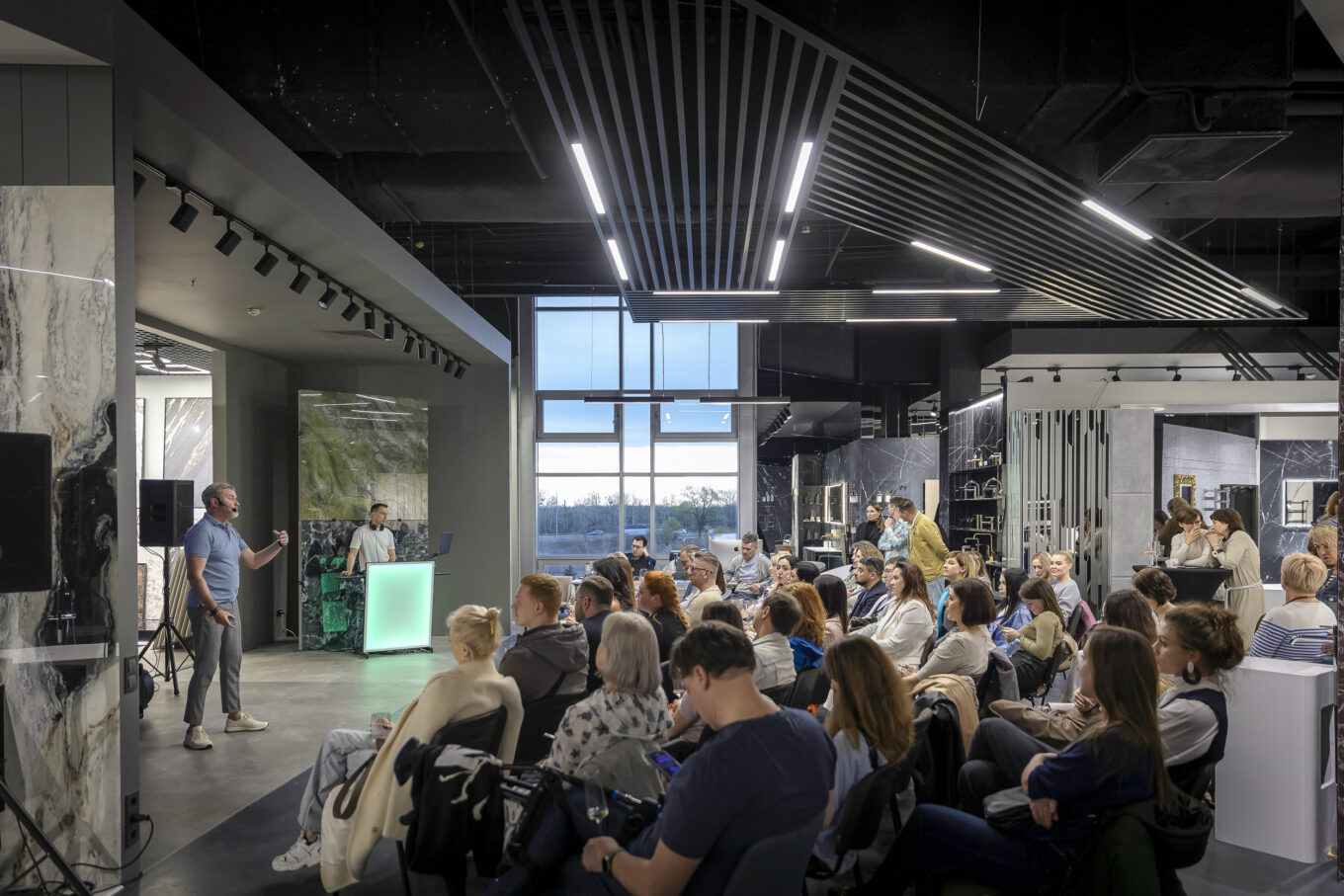 «Я би хотіла висловити окрему вдячність компанії Freedom та Генадію Зубку зокрема за те, що вони мають сміливість продовжувати працювати під час війни, втілювати в життя нові проєкти, відкривати нові простори, — зазначила Катерина. — Для мене співпраця з Freedom особлива. Зазвичай, коли ми говоримо про керамограніт в інтер’єрі, люди уявляють його як надійний, втім, доволі технічний і візуально стриманий матеріал. Та саме проєкти, реалізовані спільно з Freedom, завжди давали можливість розкрити естетичний потенціал цього матеріалу».