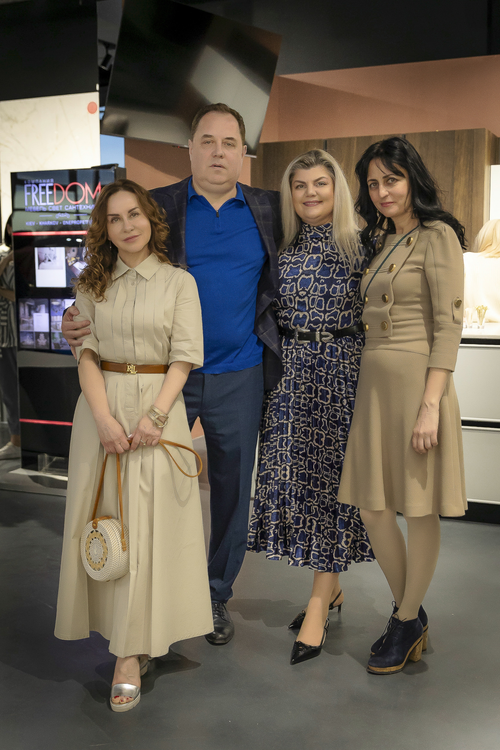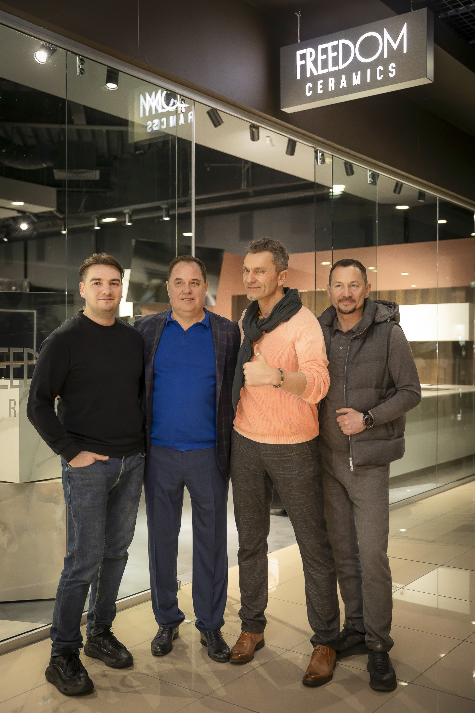 Фото 1 На фото зліва направо — засновник компанії Freedom Геннадій Зубко, директорка салонів Freedom «Домосфера» Альона Байрамян, Олександр Пліско та Михайло Пліско — представники напрямку Freedom ceramics
