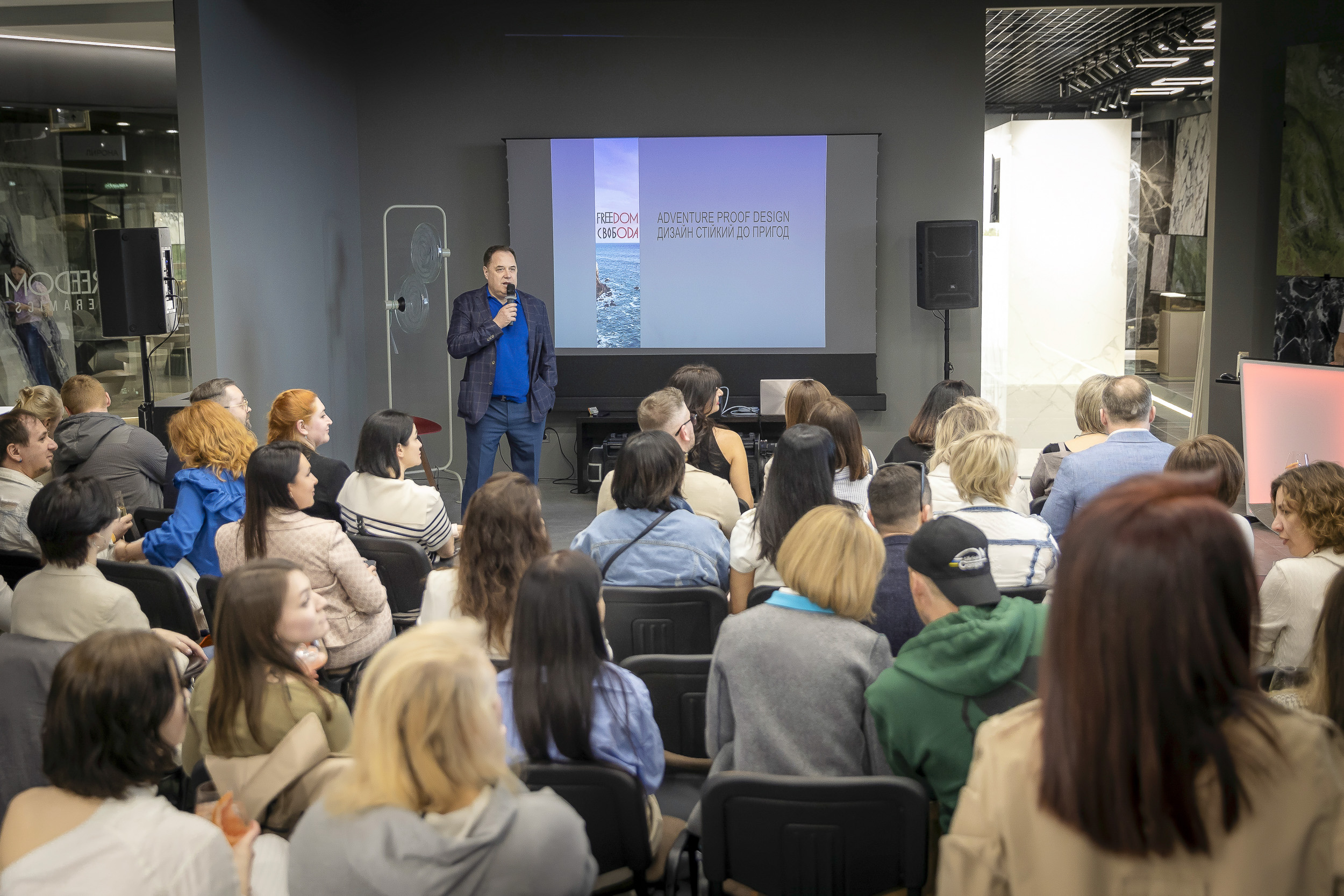 «Я би хотіла висловити окрему вдячність компанії Freedom та Генадію Зубку зокрема за те, що вони мають сміливість продовжувати працювати під час війни, втілювати в життя нові проєкти, відкривати нові простори, — зазначила Катерина. — Для мене співпраця з Freedom особлива. Зазвичай, коли ми говоримо про керамограніт в інтер’єрі, люди уявляють його як надійний, втім, доволі технічний і візуально стриманий матеріал. Та саме проєкти, реалізовані спільно з Freedom, завжди давали можливість розкрити естетичний потенціал цього матеріалу».