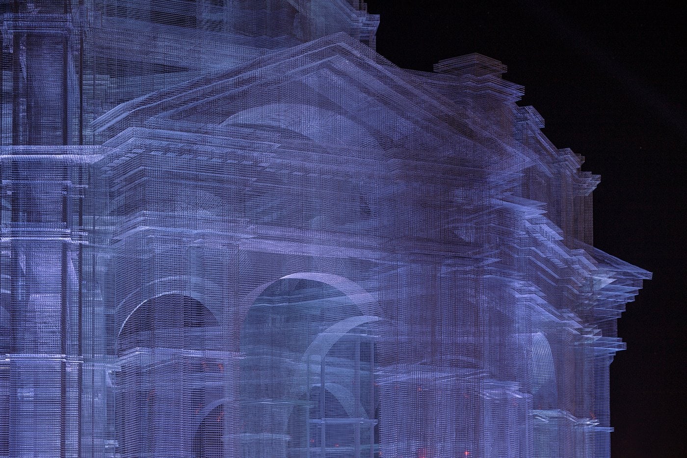 Не первый год итальянец Эдуардо Тресольди создает похожие на голограммы архитектурные объекты и инсталляции из проволочной сетки, открывая нам путь в неизвестное измерение.