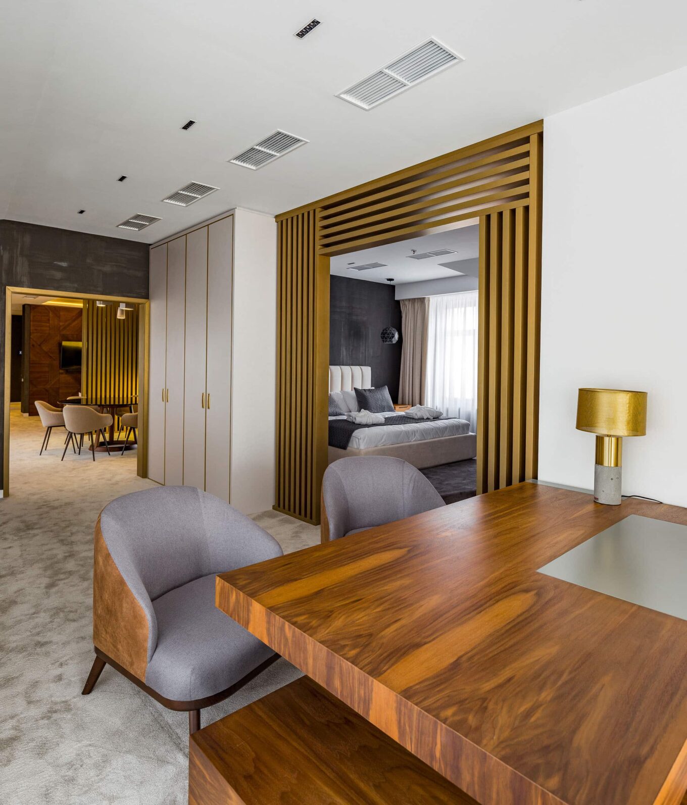 Точкой роста стал и первый отель, который мы сделали в нынешнем составе, — Aloft в Киеве, принадлежащий сети Marriott International: 320 номеров и три года работы, полтора из которых мы ждали клиента. Нам надо было в кратчайшие сроки системно, технологично завершить проект и нам это удалось. Следующий революционный для нас проект, который мы сделали сразу после Aloft, — 5‑звездочный Grand Hotel Lviv, где нам доверили всю центральную зону с рецепцией и 24 колоннами.