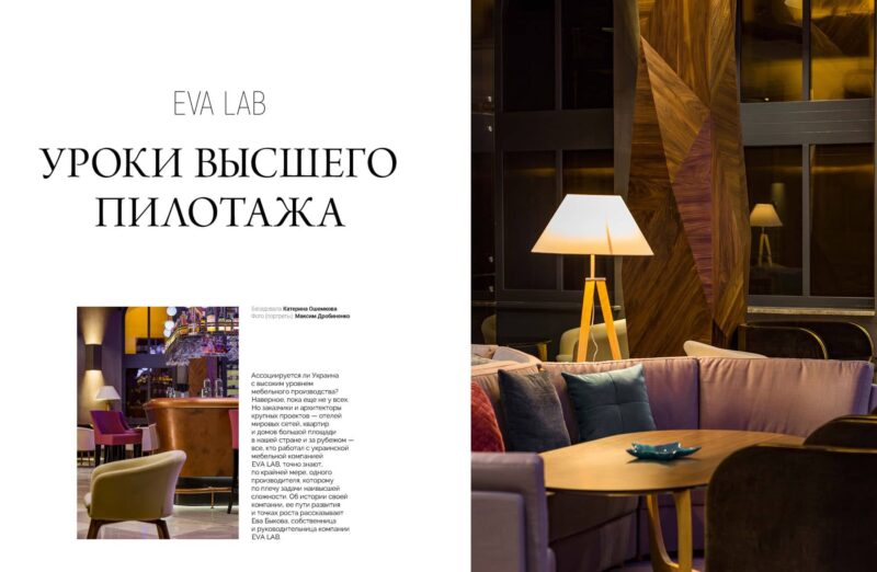 Мне нравятся традиции, я сама люблю их создавать. И, безусловно, обучаясь самостоятельно мебельному делу с нуля, я понимала, что «Лагода» — колоссальный ресурс, который можно использовать, но в первую очередь я думала о сохранении известной марки и славных традиций. Мне казалось правильным, честным, что нельзя, чтобы такая фабрика, как «Лагода», которая существовала с 1947 г., просто ушла в небытие. Я решила, что должна сохранить как минимум имя и людей, которые на ней работали. Конечно, оборудование — более 80 единиц — мне тоже очень помогло и пригодилось. Сейчас у нас есть два имени: администрирующая компания EVA LAB и отдельное юридическое лицо — Lagoda by EVA LAB.