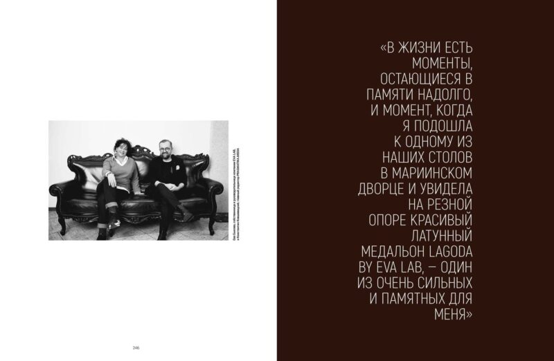 «В жизни есть моменты, остающиеся в памяти надолго, и момент, когда я подошла к одному из наших столов в Мариинском дворце и увидела на резной опоре красивый латунный медальон Lagoda by EVA LAB, — один из очень сильных и памятных для меня»