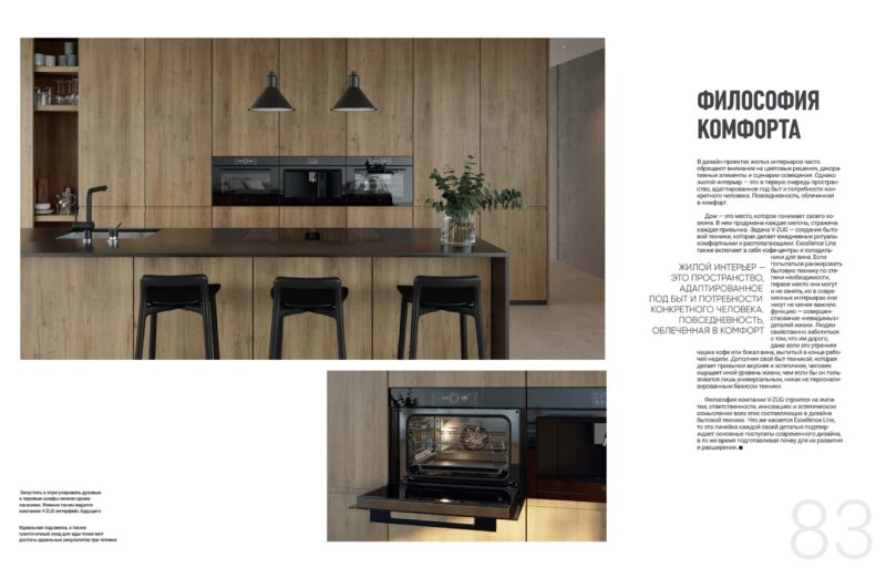 Дом — это место, которое понимает своего хозяина. В нем продумана каждая мелочь, отражена каждая привычка. Задача V-ZUG — создание бытовой техники, которая делает ежедневные ритуалы комфортными и располагающими. Excellence Line также включает в себя кофе-центры и холодильники для вина. Если попытаться ранжировать бытовую технику по степени необходимости, первое место они могут и не занять, но в современных интерьерах они несут не менее важную функцию — совершенствование «невидимых» деталей жизни. Людям свойственно заботиться о том, что им дорого, даже если это утренняя чашка кофе или бокал вина, выпитый в конце рабочей недели. Дополняя свой быт техникой, которая делает привычки вкуснее и эстетичнее, человек ощущает иной уровень жизни, чем если бы он пользовался лишь универсальным, никак не персонализированным базисом техники.