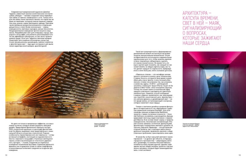 Говорячи про світловий дизайн у розрізі філософії та інтерактивності, ми звертаємося до робіт української компанії Expolight. Для цієї команди найцікавішими є проєкти із трьома ступенями складності: Микола Каблука, засновник і керівник бренду, порівнює сходинки завдань компанії з пірамідою Маслоу. В її основі лежать норми та правила освітленості, технічний складник.