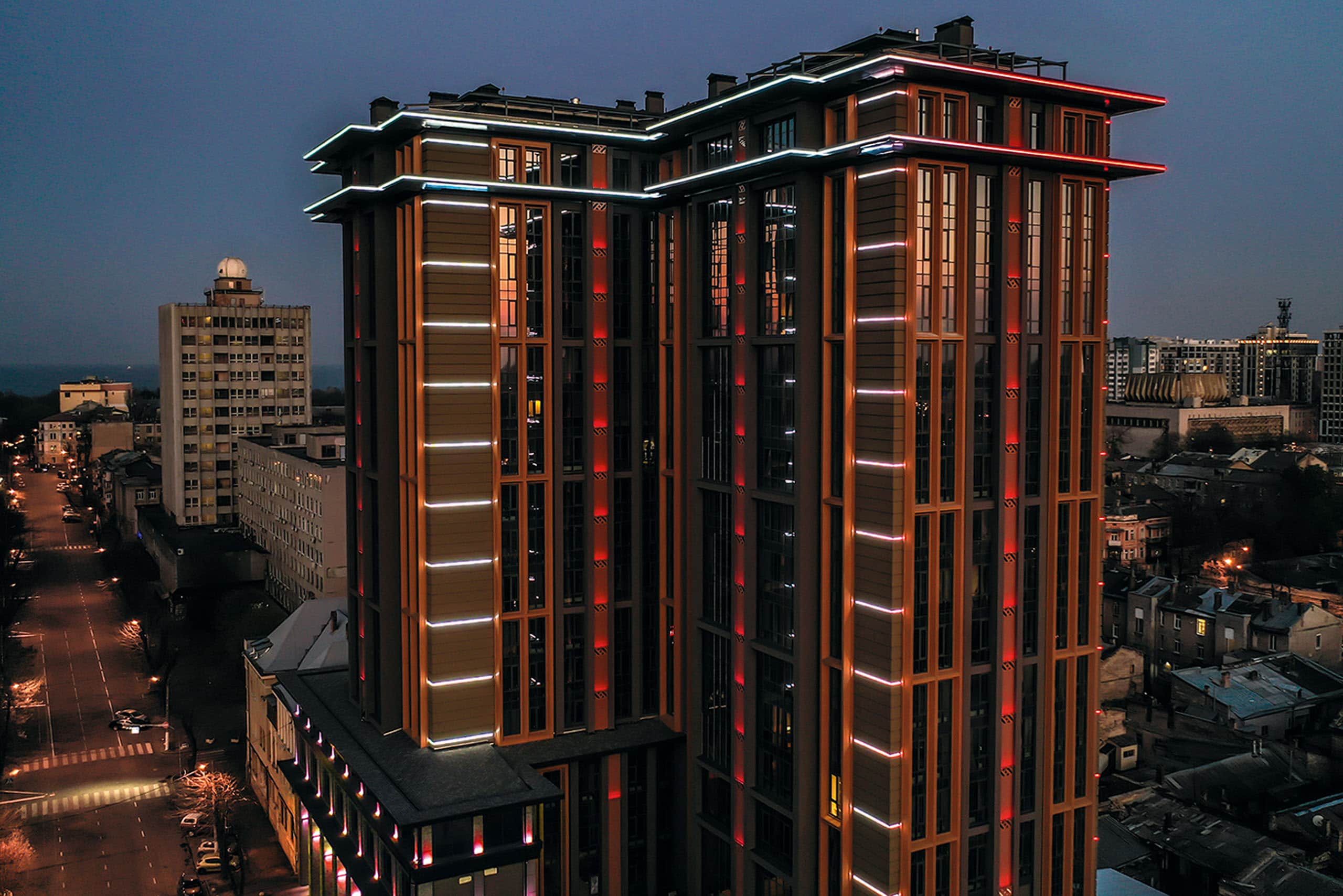 «Нам подобається дивитися на сучасне підсвічування фасадів як на сучасні медіа, — розповідає Каблука, — вони доносять інформацію, транслюючи різні ідеї через образи. Тому найпримітивніший підхід — робити з фасадів «ялинки», запускаючи на них рекламні ролики. Найчастіше такі рішення трапляються на китайських об’єктах. Наша європейська традиція вважає цей метод безвідповідальним і неправильним».