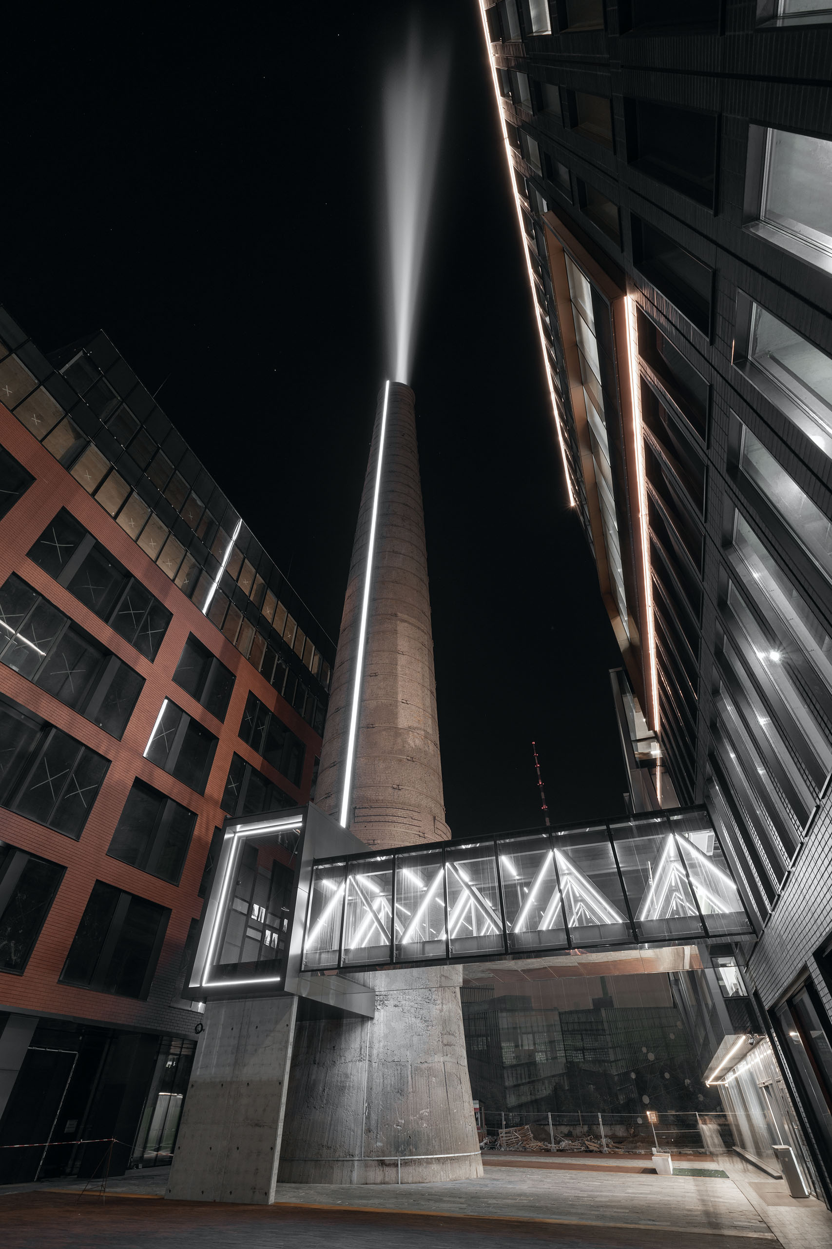 І замовник прийняв би рішення про їхнє знесення, якби на цьому етапі проєктування не підключилися фахівці Expolight і не наполягли на новій інтерпретації споруд. Тепер над будівлею під музику з’являються величезні лазерні квіти — мешканці чи гості міста можуть запустити їх зі свого смартфона. Інтерактивне світлове шоу замість класичного феєрверку — це не просто розвага, а й соціальне послання.