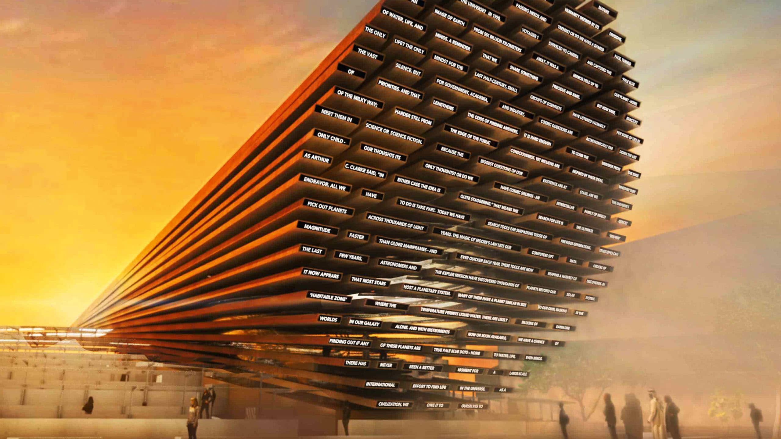Головна особливість спроєктованого нею павільйону — інтерактивний інтерфейс, що складається з художнього тексту та звукового ландшафту. Величезні рядки, що світяться, немов вилітають із гігантського дерев’яного «рупора», — поезія, створена з окремих повідомлень відвідувачів виставки. У режимі реального часу вони надсилали слова зі своїх смартфонів, а штучний інтелект поєднував їх у єдиний твір.