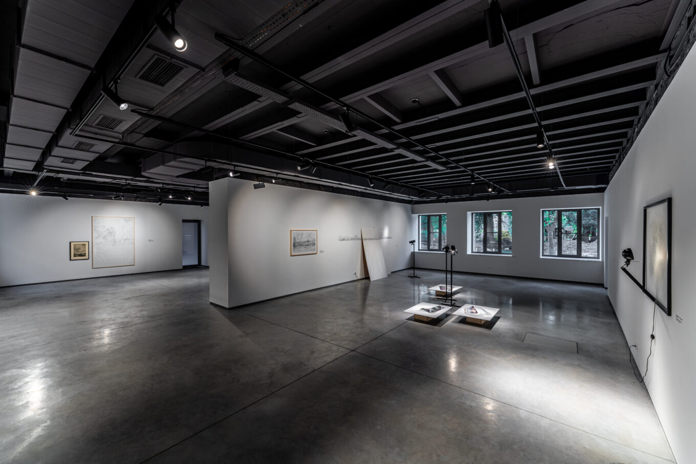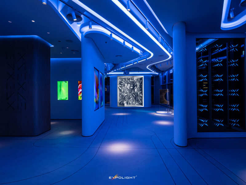 Інтер’єр галереї вражає мінімалізмом і технологічністю. Фізичний простір — немов полотно для головного артиста — світла.