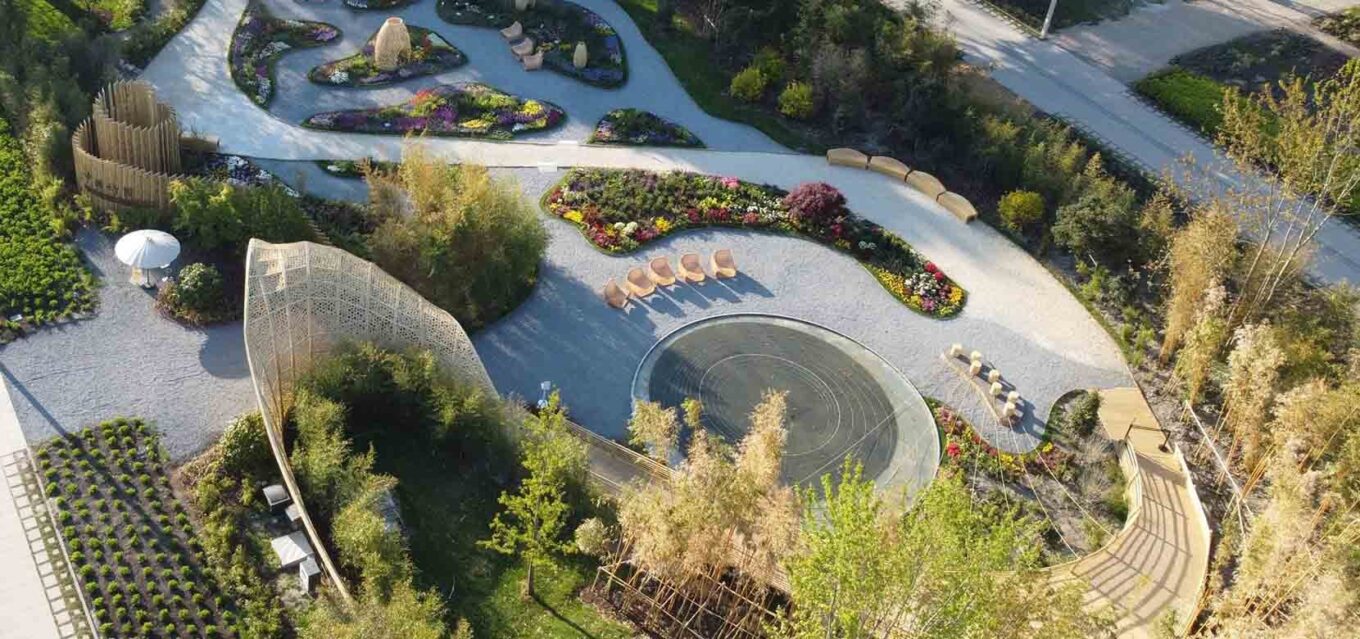 А оглянути територію загалом можна з кабінки канатної дороги, яка проходить над усім виставковим півостровом. Із висоти 35 метрів добре видно, що проєкт MVRDV Cité Idéale, презентований ще кілька років тому, вдалося втілити практично точно відповідно до плану. Незважаючи на регулярну сітку, ландшафт не є плоским і штучним. Є кілька архітектурних домінант, але важливішу роль відіграють уже дорослі дерева в дендрарії й арборетумі. Підготовка до виставки велася з 2012 року, і сьогодні частину території півострова займає вже дорослий тінистий парк.