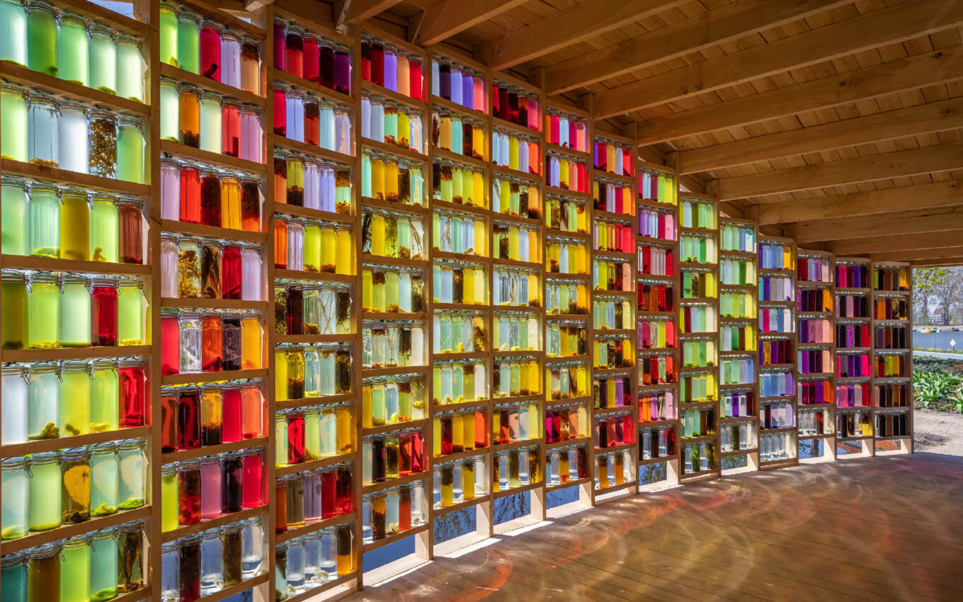 Мабуть, артоб’єктом можна вважати і павільйон Shades of Nature, який представляє текстильну промисловість голландської провінції Флеволанд. Вигнутий фасад павільйону є дерев’яним стелажем, заповненим безліччю скляних банок, в яких відбувається справжня магія. Сонячне світло активує процес фарбування вовни за допомогою натуральних барвників. Можна розташуватися на повстяному килимі й довго релаксувати, розглядаючи цей дивовижний вітраж і насолоджуючись багатством природної палітри, що відвідувачі й роблять.