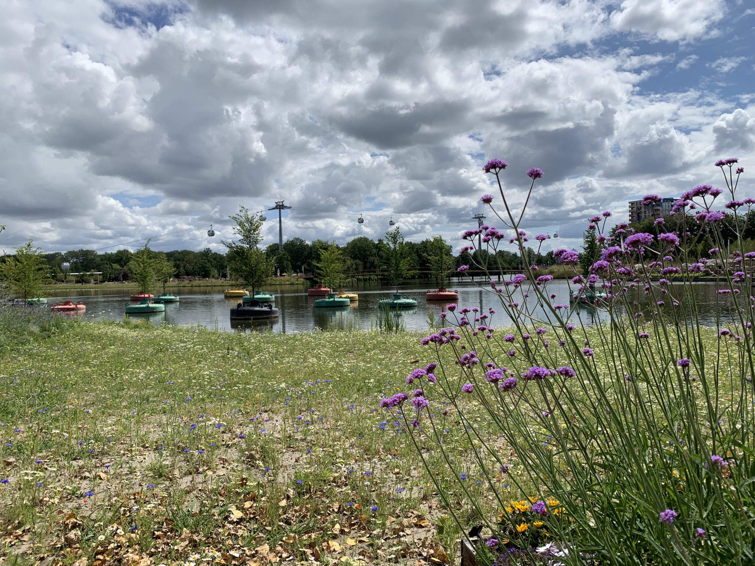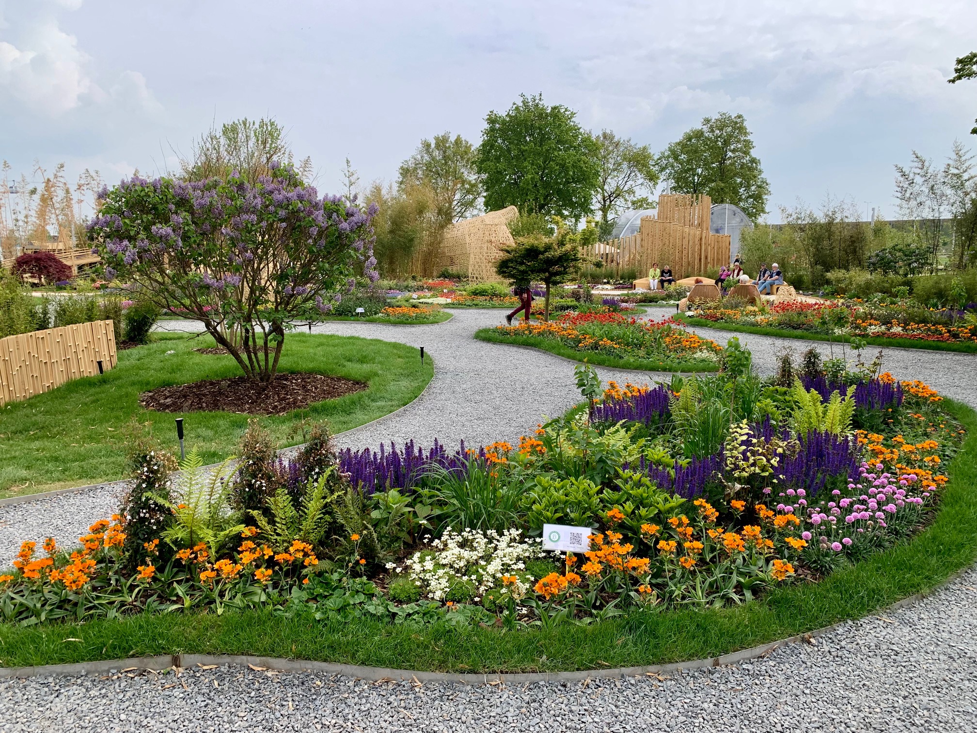 Виставкові павільйони обрамлені розкішними бордюрами з новинками голландської селекції — багаторічниками, чагарниками. Оскільки виставка тривала кілька місяців, то ландшафт змінювався з кожним сезоном. Усі композиції доглядають садівники: щось прибирають, щось додають, щоб виставкові простори зберігали декоративність. Але оскільки наголос зроблено на ландшафтах малого догляду, то на піку літа головну роль грали масиви натуралістичних лук із польовими квітами. І скрізь — і в луках, і в розаріях — можна побачити будиночки для комах і вулики.