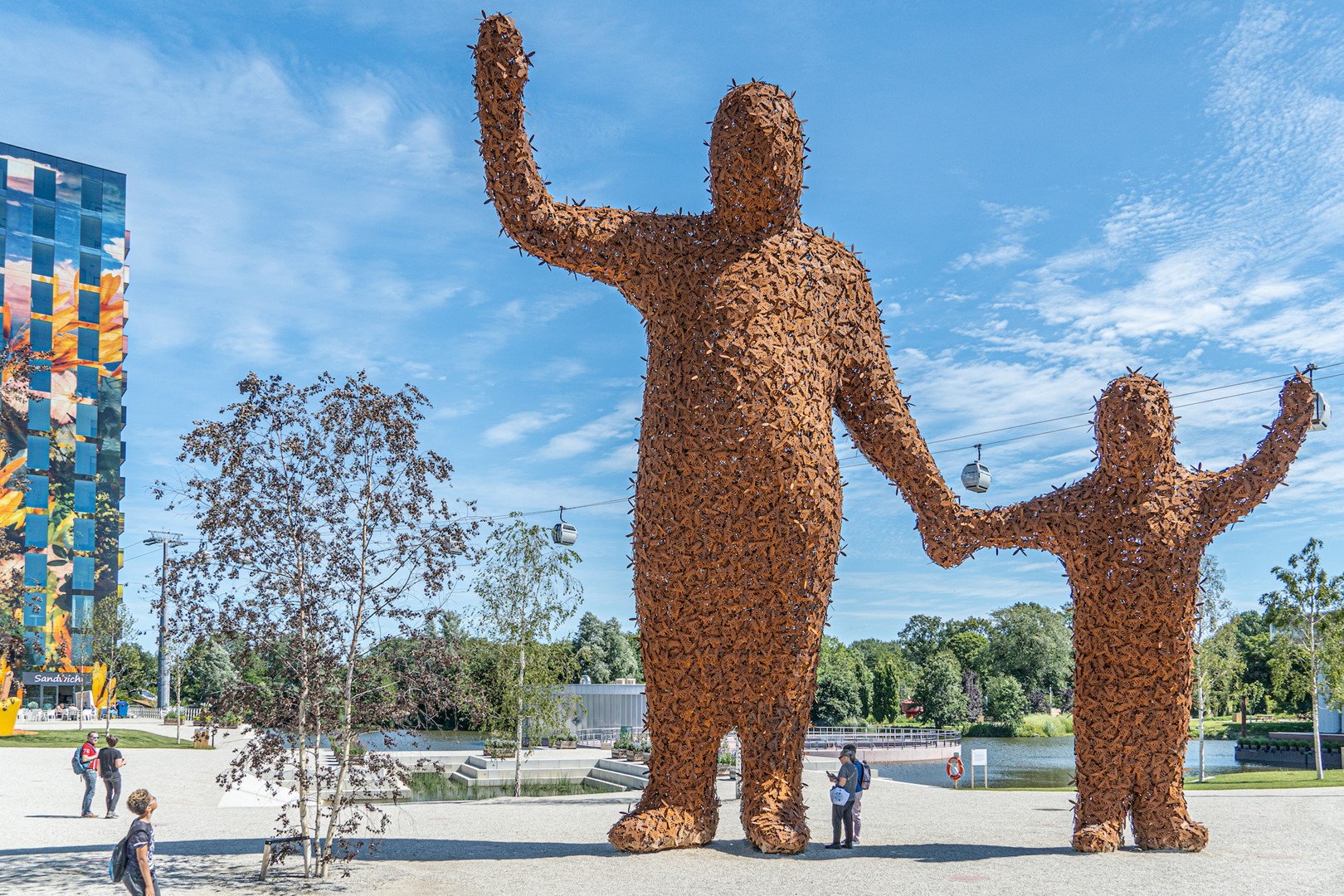 Дві гігантські постаті, вкриті крихітними бджолами з кортену, — це робота Флоріана Хофмана. Скульптура Beehold нагадує нам, як сильно ми залежимо від крихітних комах-запилювачів. Фаріда Седок перетворила дорожнє покриття авеню Хортус на художнє панно. У створенні картини завдовжки близько 700 метрів брали участь відвідувачі виставки.