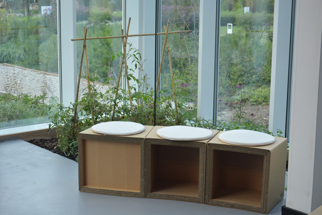 Мабуть, артоб’єктом можна вважати і павільйон Shades of Nature, який представляє текстильну промисловість голландської провінції Флеволанд. Вигнутий фасад павільйону є дерев’яним стелажем, заповненим безліччю скляних банок, в яких відбувається справжня магія. Сонячне світло активує процес фарбування вовни за допомогою натуральних барвників. Можна розташуватися на повстяному килимі й довго релаксувати, розглядаючи цей дивовижний вітраж і насолоджуючись багатством природної палітри, що відвідувачі й роблять.