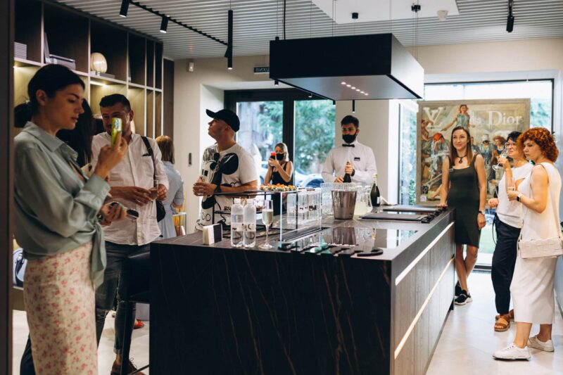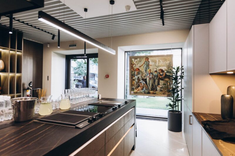 Новый шоурум расположен в удобной локации Киева — на первом этаже бизнес-центра Infinity. Здесь опытные менеджеры расскажут о последних новинках, представленных в экспозиции: разновидностях холодильников, духовых шкафов, варочных поверхностей. Все, кто работают с интерьерами, понимают разницу между каталогом и ощущениями, возникающими в результате коммуникации с изделием. Тактильность и эмоциональный опыт также ценны для архитекторов и дизайнеров, как и живое общение с клиентом. Сюда можно прийти с друзьями и коллегами, партнерами и заказчиками — пространство располагает к вдумчивой и неспешной беседе. Интерьер салона не похож на коммерческий. Скорее, это городская гостиная. Вместительный спейс, большие окна, винные шкафы, кофемашины и, конечно, центральный герой — кухонный остров с барными стульями — в распоряжении гостей. Здесь планируют устраивать кулинарные шоу и мастер-классы, выставки и презентации. Первая яркая вечеринка, объединившая сразу несколько перечисленных форматов, состоялась 9 июля. Как вы, наверное, догадались, посвящена она была открытию салона.