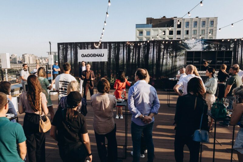 Поздравить своих коллег пришли бизнес-партнеры компании, архитекторы, дизайнеры, представители медиа, рекламы, культуры и искусства. Из руководителей присутствовали генеральный директор ТОВ «БСХ Побутова Техніка» Сергей Максимов и финансовый директор д-р Кшиштоф Вольняк. Руководитель ГК «Алкотек» Александр Ефимов — партнер бренда, в сотрудничестве с которым и состоялось появление столичного шоурума, открыл вечер и пригласил к участию в празднике: «Gaggenau — это техника и для тех, кто любит кулинарию, и для тех, кто просто ценит качественное оборудование в своих интерьерах. Gaggenau — бескомпромиссное счастье и единственный способ, позволяющий приготовить ваши блюда у себя дома, как на профессиональной кухне».