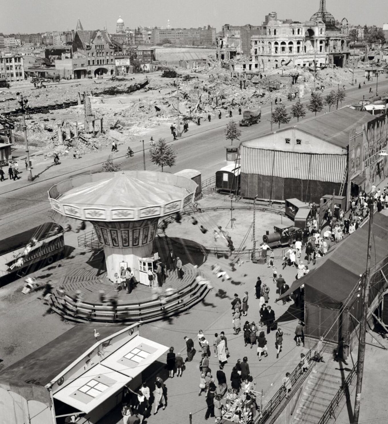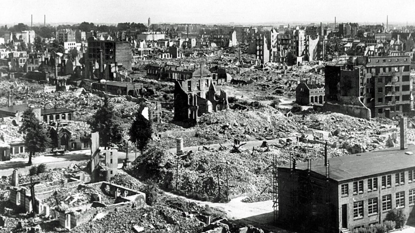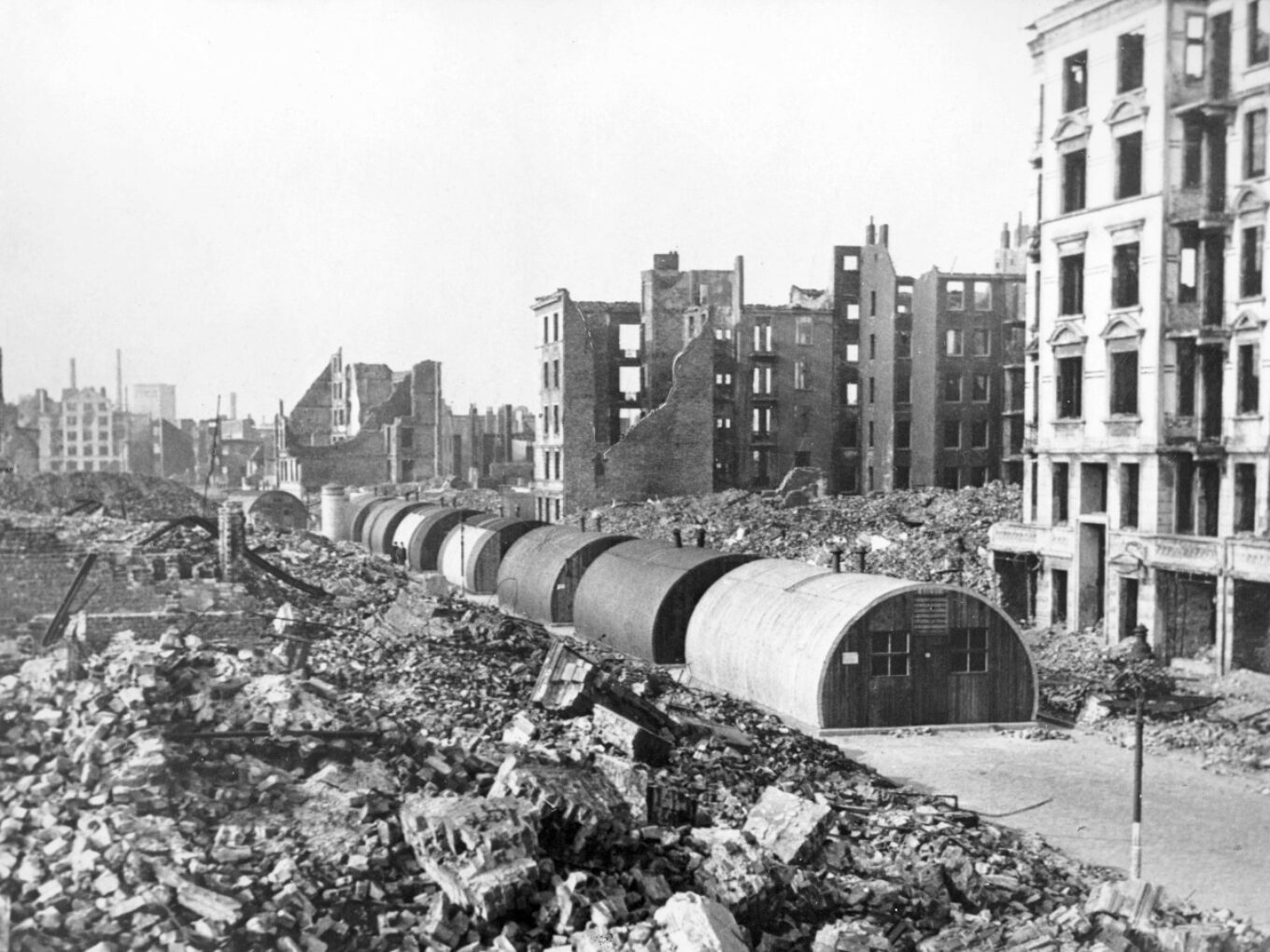 Вулиці східних робочих кварталів перетворилися на кілометри гір обгорілого щебеню, з яких стирчали уламки стін. 43 мільйони тонн щебеню! Цього було достатньо, щоби засипати всі канали Гамбурга «з гіркою». У місті не вистачало робочої сили, щоб швидко розчистити ці завали. Але, якщо переглянути архівні фото й відео, можна побачити, що серед руїн жваво сновигають люди.