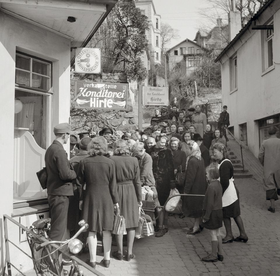 Перші повоєнні роки були тяжкі. План Маршалла почав діяти не миттєво, і до «Рейнського економічного дива» треба було ще дожити. Розруха, відсутність житла (70% житлового фонду знищено чи є непридатним для проживання), голод, масові звільнення держслужбовців, процедури денацифікації, продукти за картками.