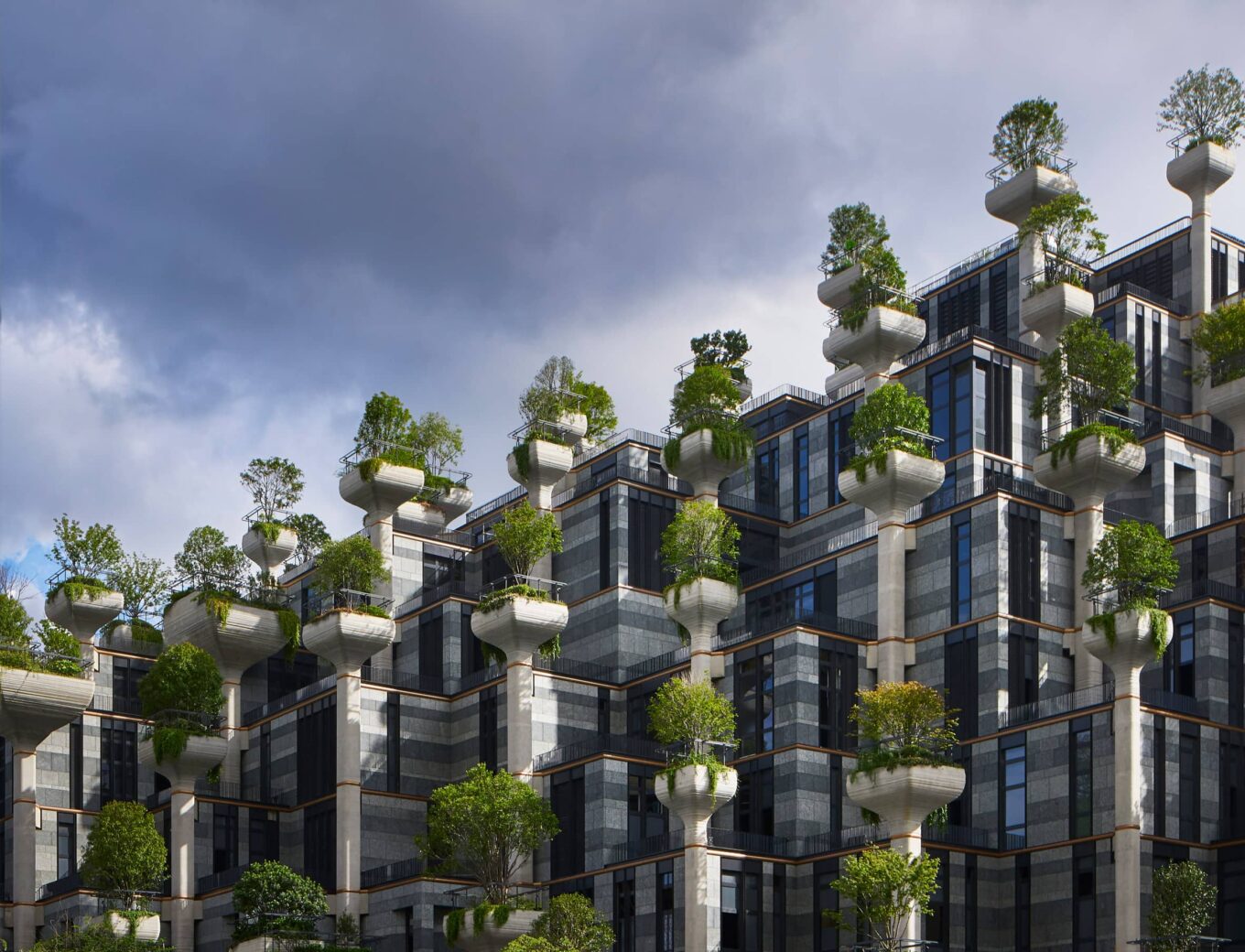 У 2020 році має бути завершений і багатофункціональний комплекс 1000 Trees у Шанхаї, де лілієподібні бетонні опори увінчані контейнерами для дерев.
