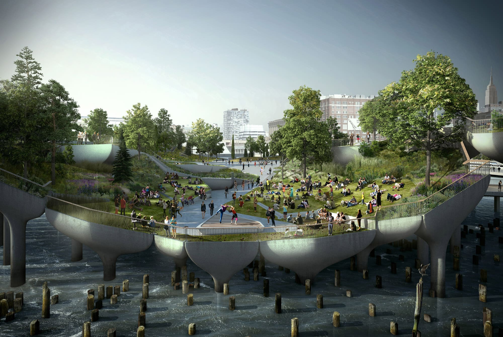 Таким буде ландшафтний парк Pier55 у Нью-Йорку після завершення будівництва. Джерело зображення: Pier55 Inc./Heatherwick Studio