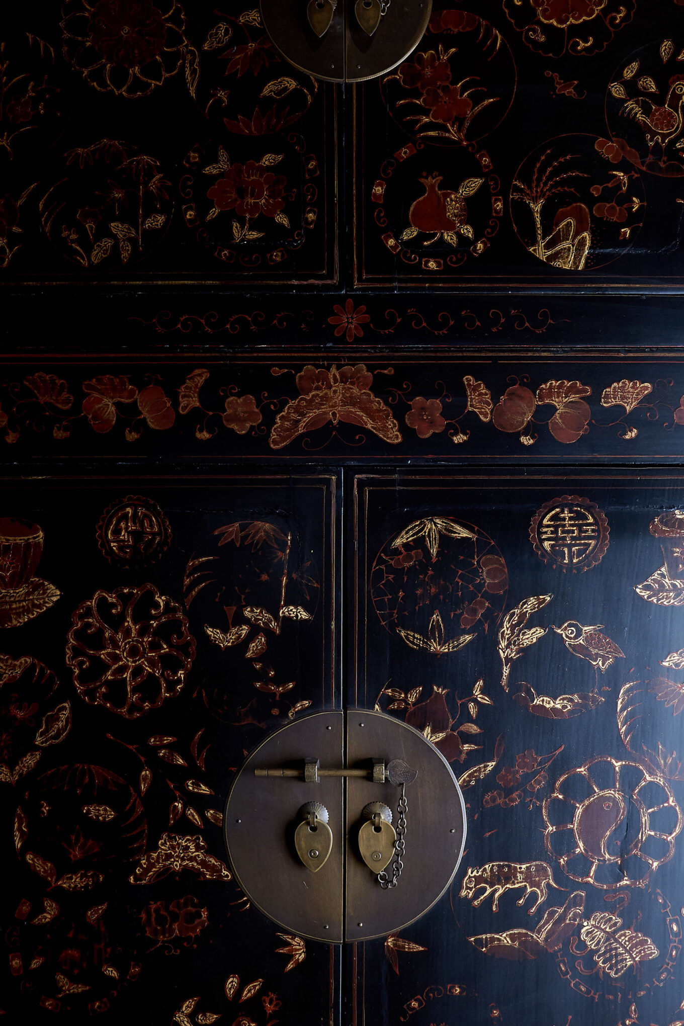 11. Шкаф-чу для жилой комнаты, сосна, лак, роспись золотом и киноварью, латунь. Китай, конец XIX в.