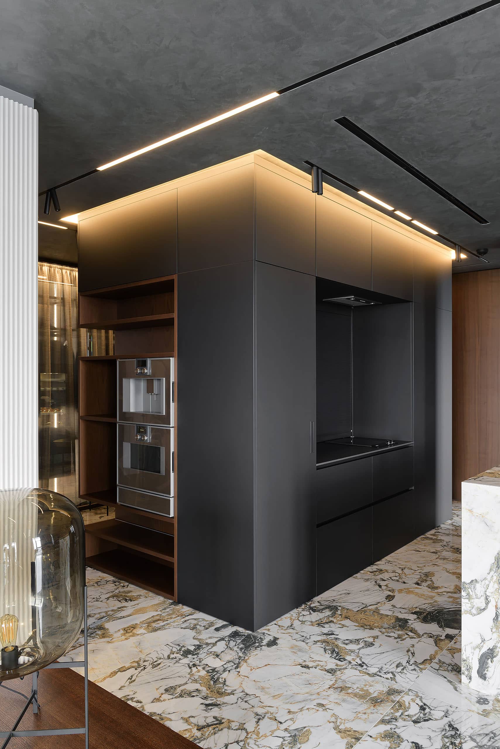 Интерьер кухни от киевской архитектурной студии Андрея Бочули и Марии Вергезовой MAD group оборудован встроенными комбинированными духовыми шкафами-пароконвектоматами серии 400