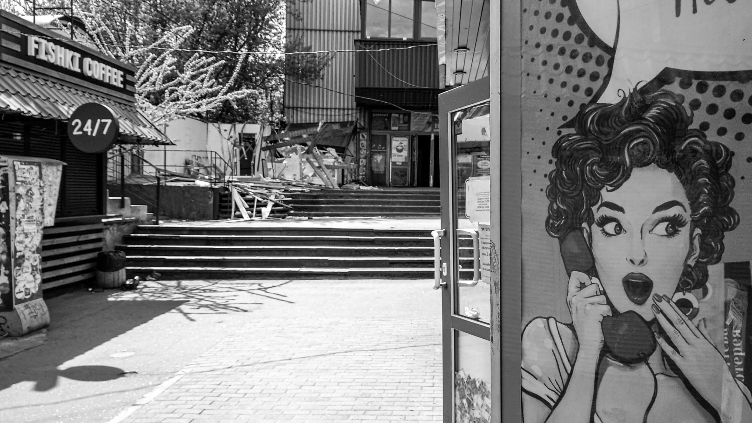 Крупнейшее пространство моего города, предназначенное для протестов и демонстраций, — харьковскую Площадь Свободы, — в последнее время трудно отличить от парковки крупного торгового центра. Только вот от самого торгового центра остался один сухой фонтан, заменивший сквер, о существовании которого никто и не догадывался, пока он хранился за пазухой традиционного для подобных мест Ленина. Выходит, что сейчас в самом центре города находится площадь с просроченным сроком годности, которая, выполнив свою функцию в 2014 г., больше не представляет ничьих интересов и в свете вечерней рекламы больше напоминает руины Лас-Вегаса из «Бегущего по Лезвию», чем центр миллионника.