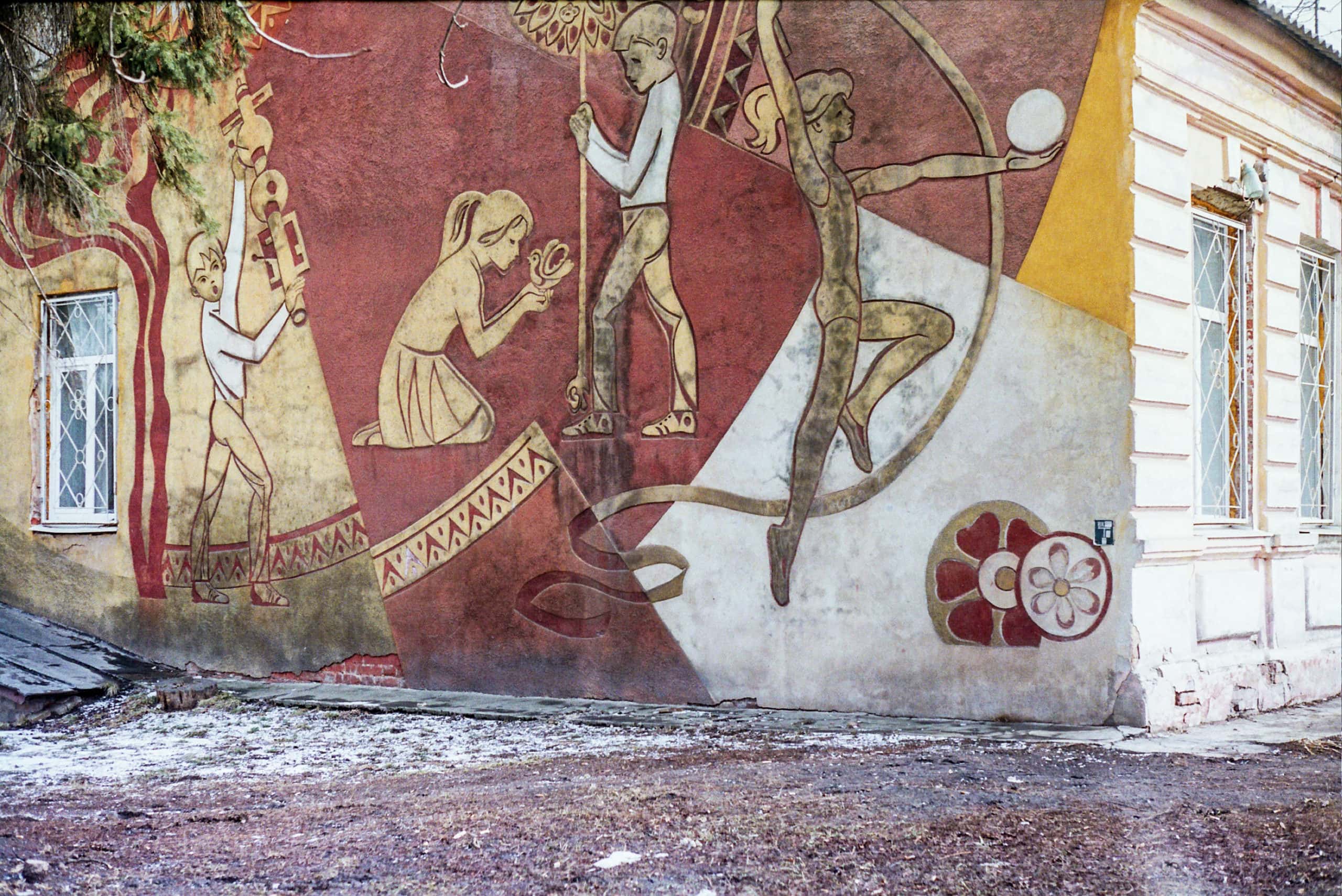 Ценность настенных росписей и мозаик советского периода является одной из самых спорных городских тем. Роспись на одном из старых харьковских особняков. Фото: Julia Rekamie / Unsplash