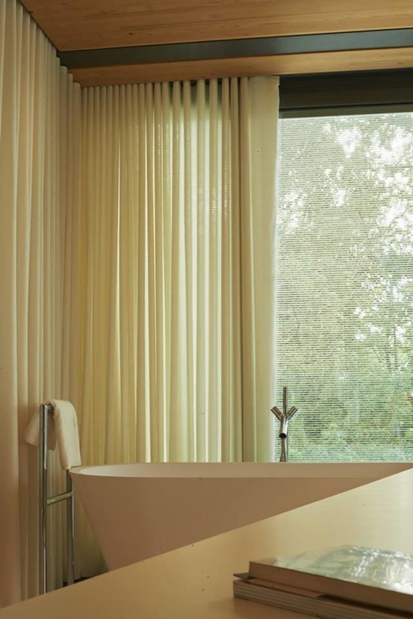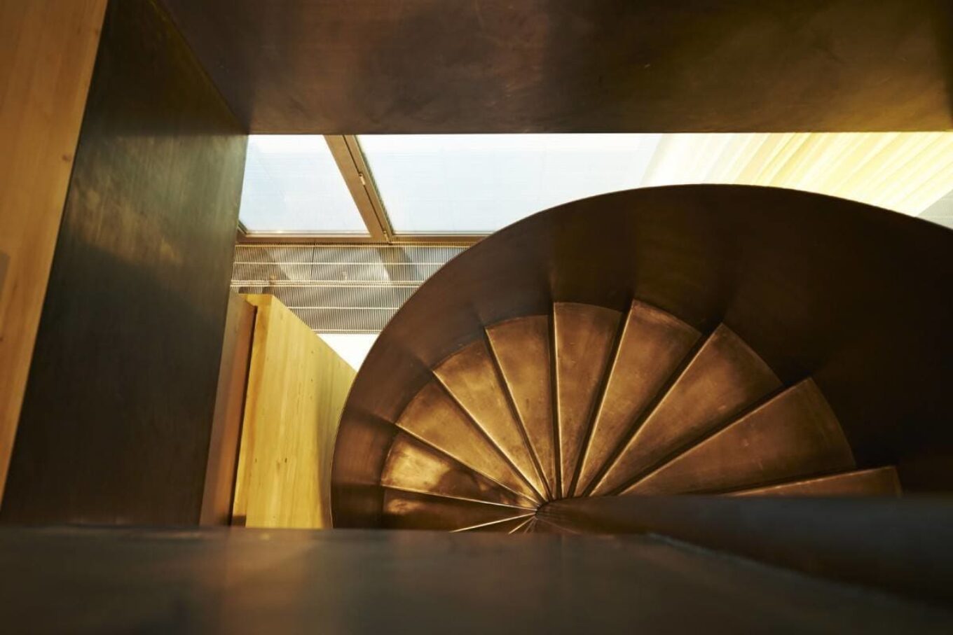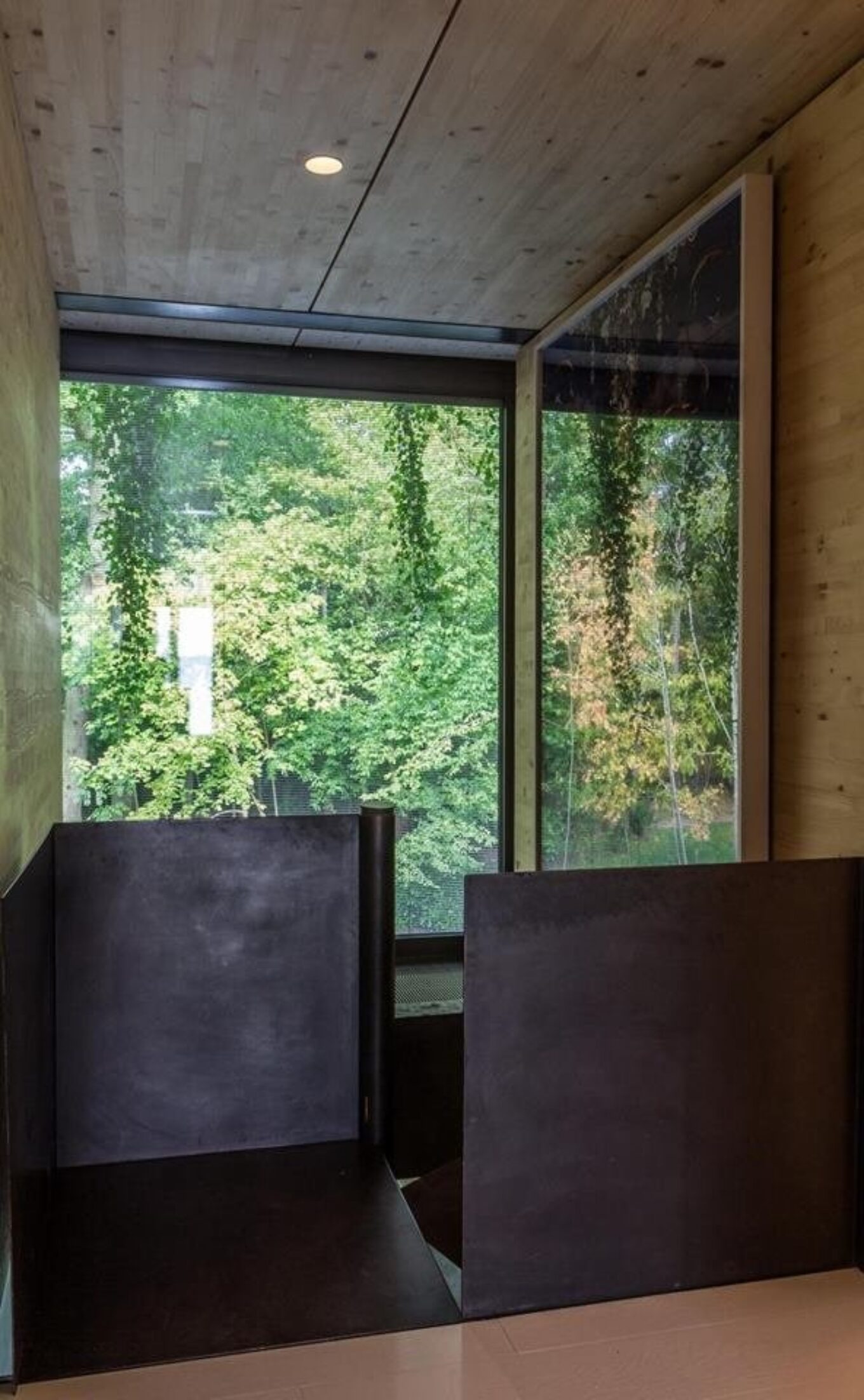 Бортики з металу, що огороджують гвинтові сходи, які з’єднують поверхи будинку. І заспокійливий краєвид із вікна