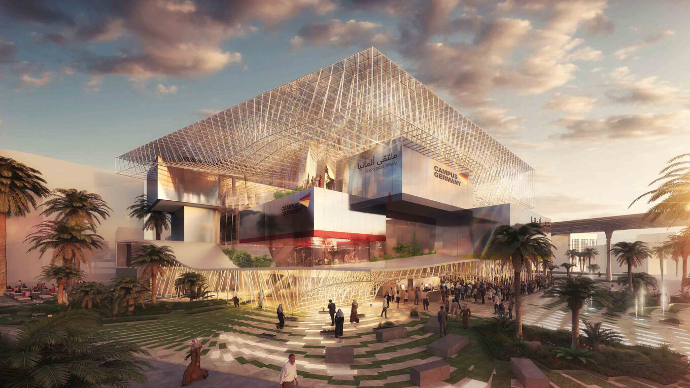 Одним із найбільших павільйонів країни на виставці EXPO 2020 у Дубаї стане павільйон Німеччини. Бюджет, виділений на весь проєкт, становить 50 млн євро. Підготовкою та управлінням Німецьким павільйоном від імені Федерального міністерства економіки та енергетики Німеччини займається компанія Koelnmesse, організатор міжнародних виставок і ярмарків. Заявки на конкурс з архітектурного та інтер’єрного проєктування німецького павільйону приймалися з усіх країн ЄС. Переможця оголосили в листопаді 2018-го. Ним стала Лабораторія візіонерської архітектури LAVA.