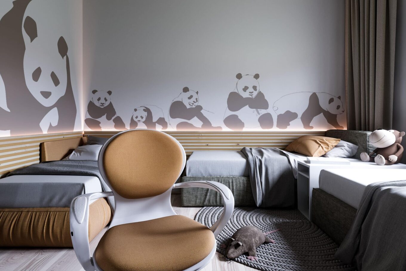 P.M.: Судячи з візуалізацій, ваш проєкт відрізняється від звичного для нашого суспільства «дизайну для дітей». У цих інтер’єрах немає буяння яскравих фарб, навпаки — вони досить стримані, тихі. Чому?