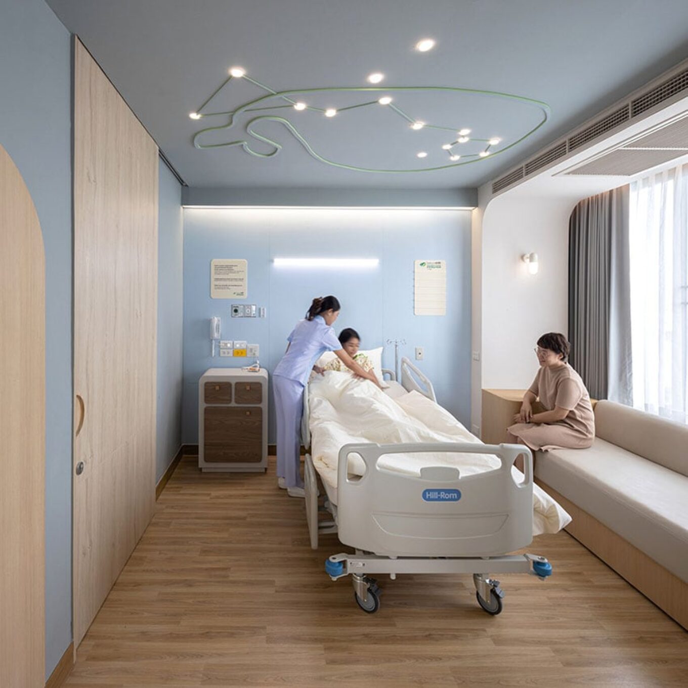Не лише в дитячих клініках, а й у багатофункціональних лікарнях вітається наявність ігрової кімнати. Конфіденційність пацієнта дуже важлива. І тут ідеться не лише про окремі палати, а й про місця, де хворий може провести час із родичами. Пацієнти наполягають, щоб середовище було максимально інклюзивним, оскільки, коли людина через хворобу опинилась у залежному стані, будь-які прості дії, які вона здатна вчиняти без сторонньої допомоги, наголошують на її автономності. І водночас дуже важливою умовою є можливість легко підтримувати зв’язок із персоналом.