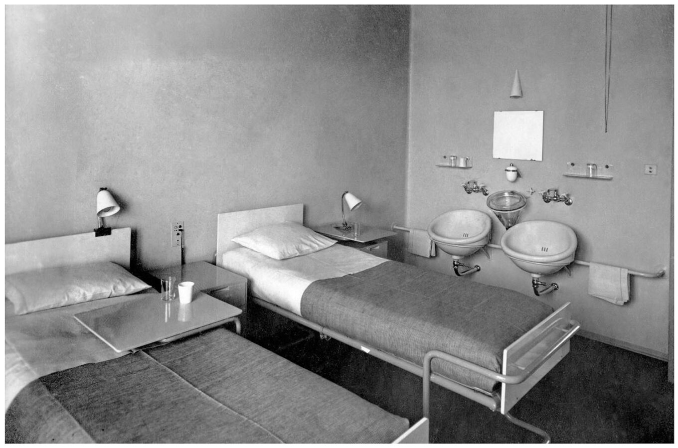 Двомісна палата в санаторії Paimio. Інтер’єри, дизайн меблів і безшумних умивальників розробляв особисто Алвар Аалто. Джерело фото: es.wikiarquitectura.com