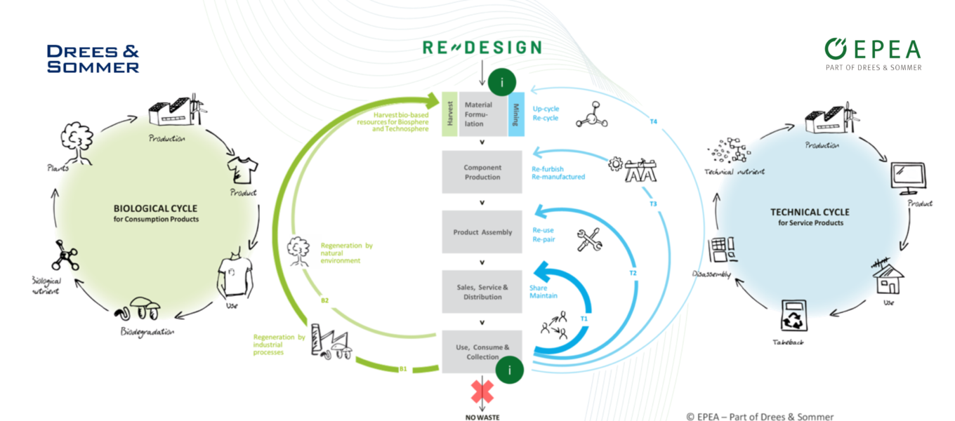 З 2019 року Drees & Sommer і EPEA Internationale Umweltforschung GmbH працюють разом, щоб створити принципи «від колиски до колиски» для циркулярної економіки в усіх галузях. Експертиза матеріалів EPEA є основою для оптимізації продуктів від молекулярного до модульного рівня. Такий підхід є привабливим не лише з екологічної точки зору, а й з економічної, що вкрай необхідно для відновлення та підвищення сталості українських міст і громад.