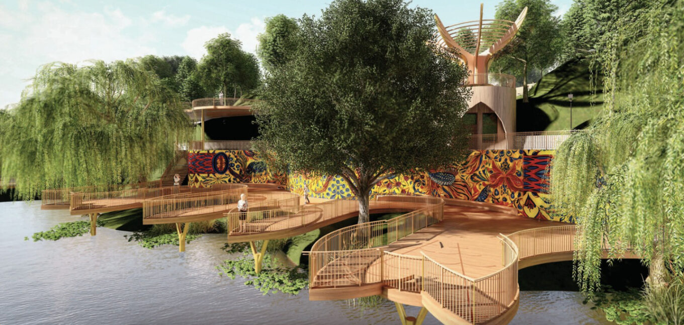 Проєкт-переможець серед студентів у містобудівному напрямі. Ескізний проєкт передбачає облаштування набережної річки Тетерів у селищі Іванків. Джерело зображення: IRS
