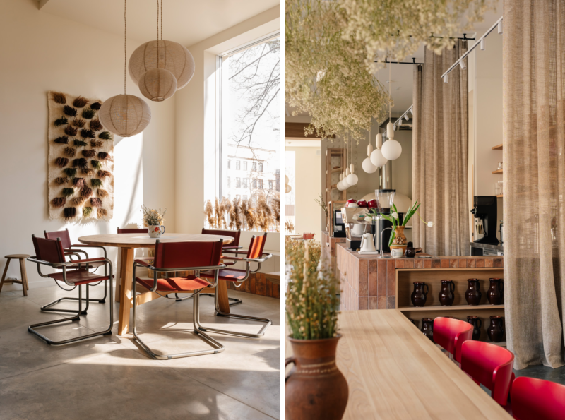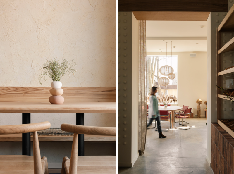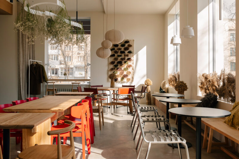 Фрагменти інтер’єру закладу «Сніданішна» в Харкові, Україна, 2024 рік. Проєкт — IK-architects. Фото — Pasha Lutov